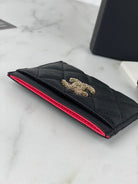 CC CARD HOLDER 19.5 BLACK GRAINED CALFSKIN GOLD ICON