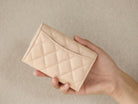 CC FLAP CARD HOLDER 11.3 BEIGE GRAINED CALFSKIN GOLD ICON