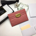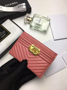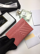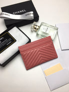 CC LINE CARD HOLDER 11.2 CORAL CALFSKIN GOLD ICON