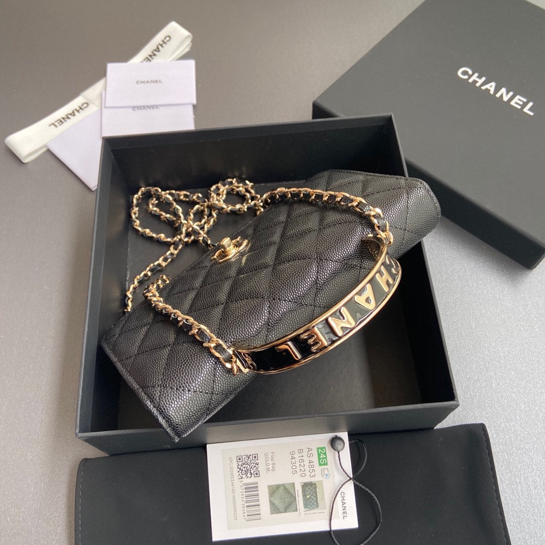 CC Woc 20cm Top Handle Black Grained Calfskin