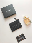 CC ZIPPED CARD HOLDER 11.5 BLACK GRAINED CALFSKIN GOLD ICON