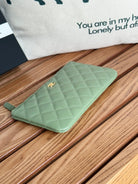 cc zipped wallet 20cm green quilted caviar gold hardware