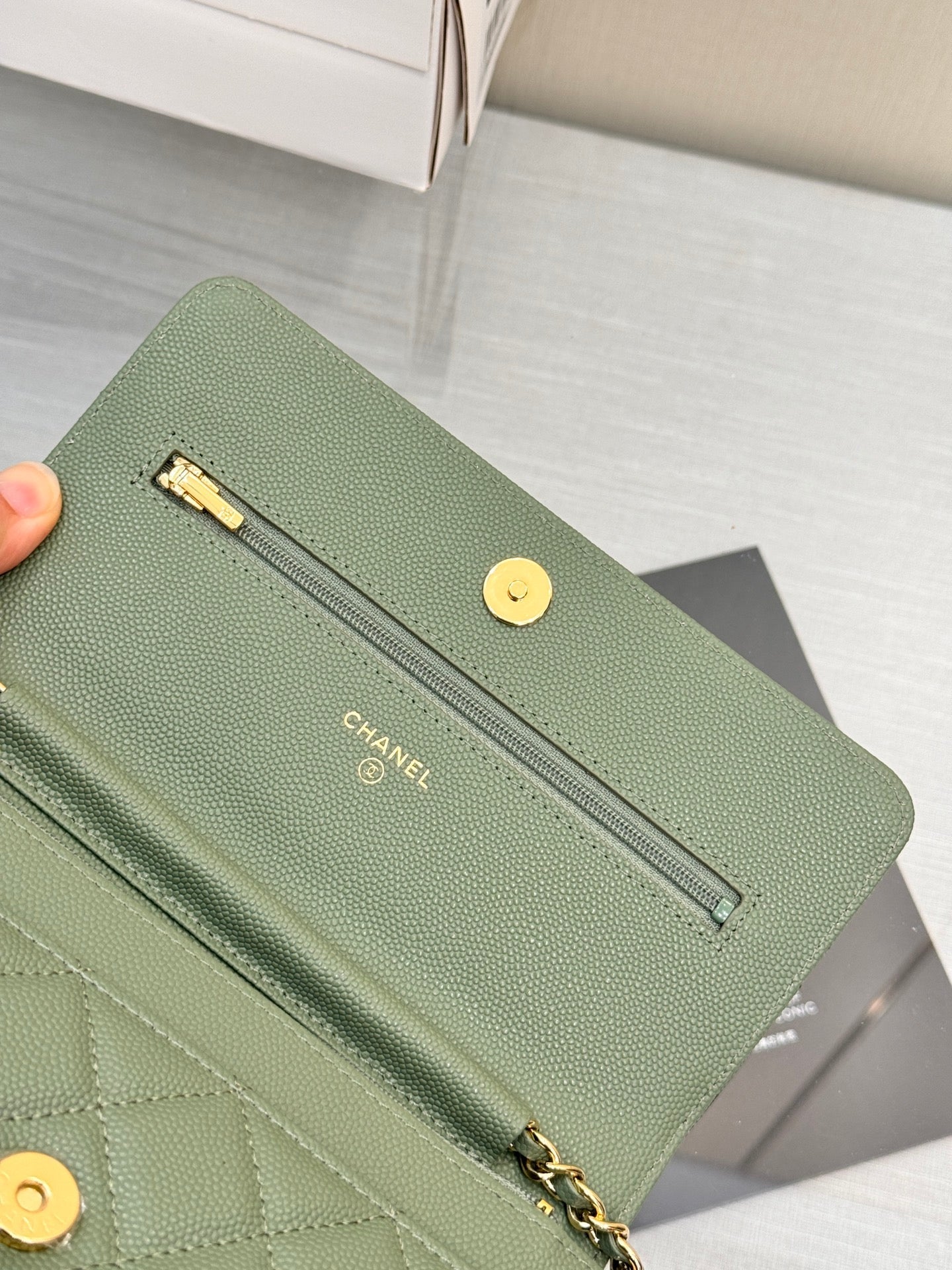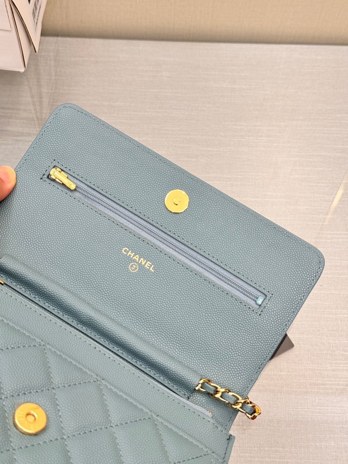WOC 19CM KHAKI BLUE CAVIAR GOLD HARDWARE