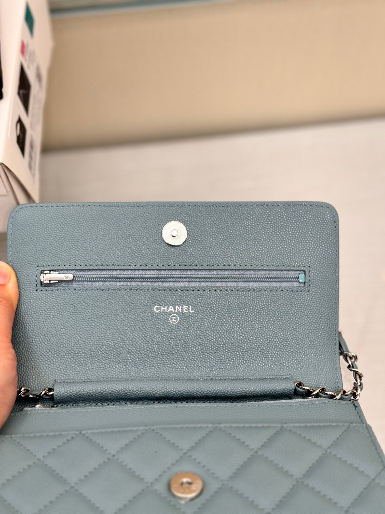 WOC 19CM KHAKI BLUE CAVIAR SILVER HARDWARE