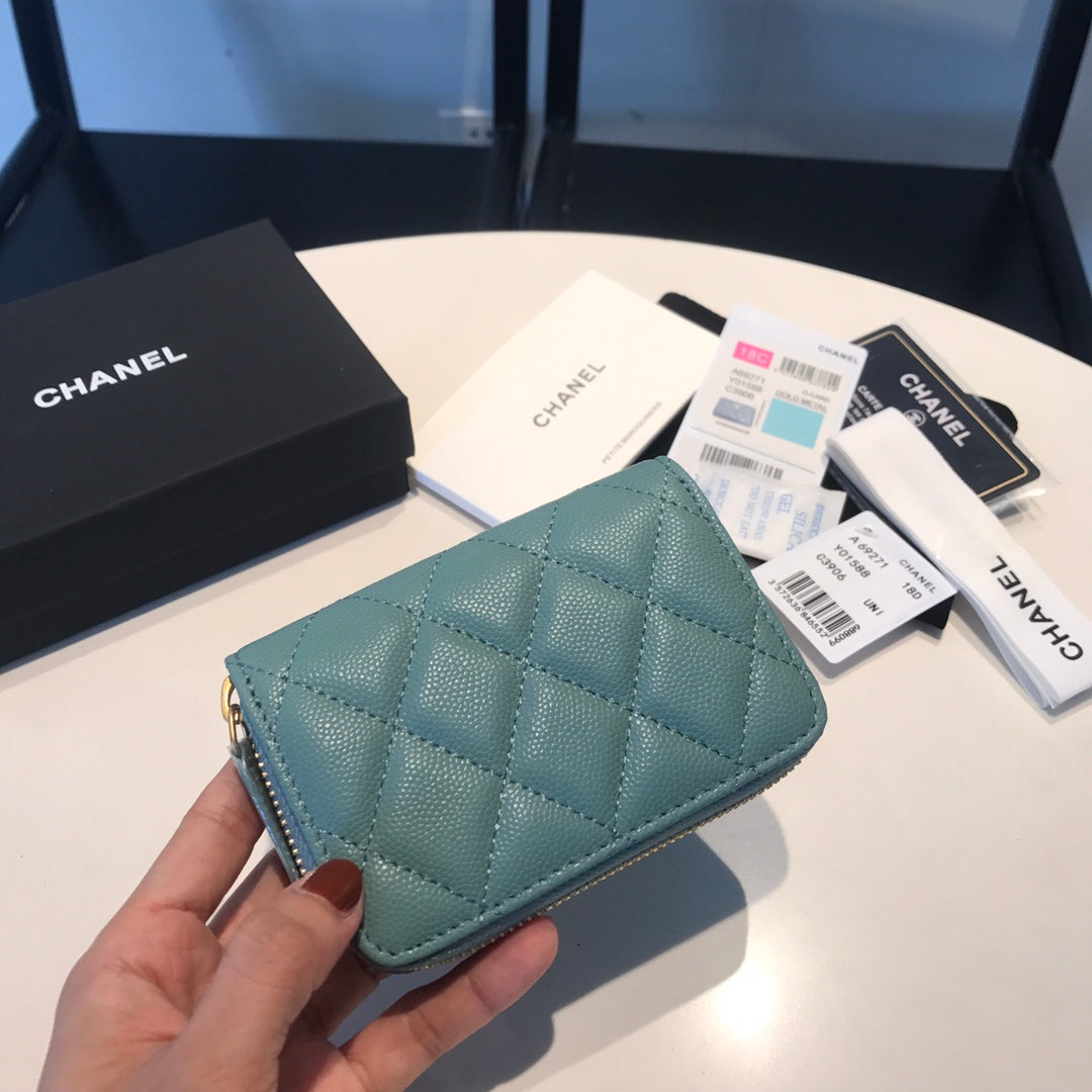 CC ZIPPED CAVIAR PURSE 11 TURQUOISE CALFSKIN GOLD ICON