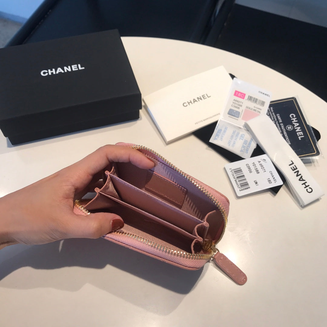 CC ZIPPED COIN PURSE 11 PINK GRAINED CALFSKIN