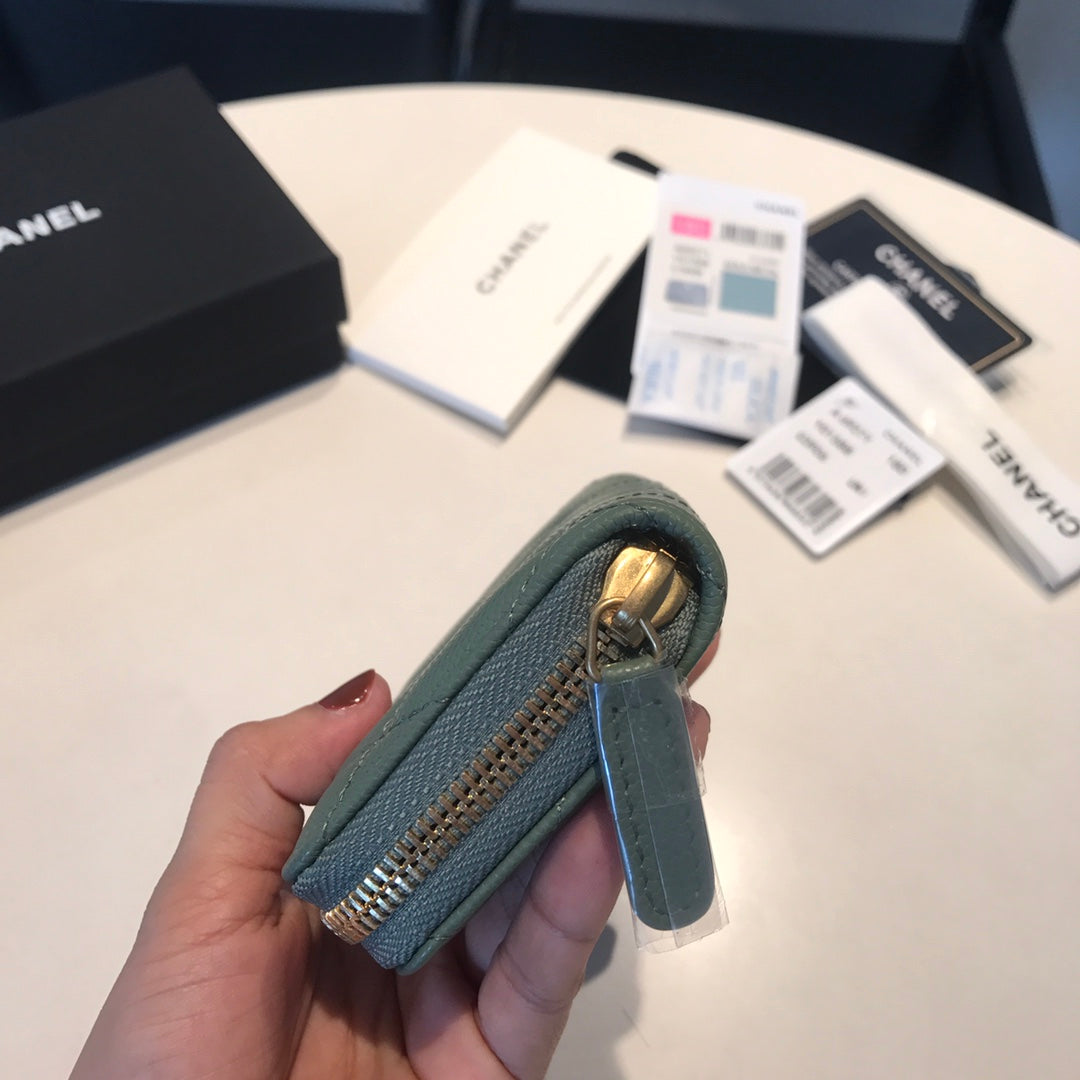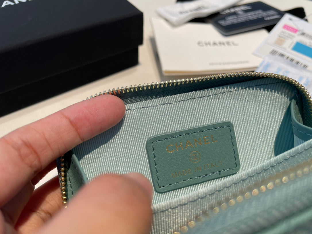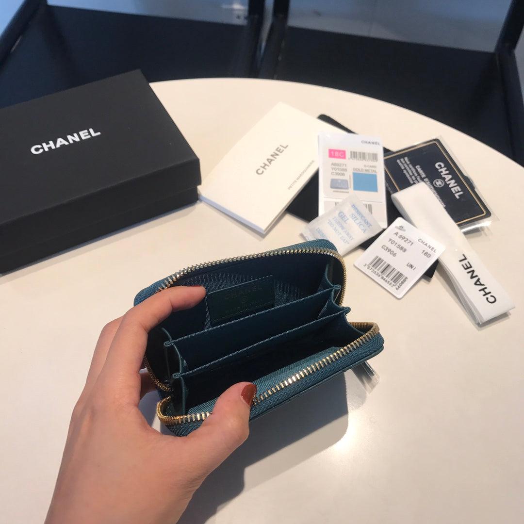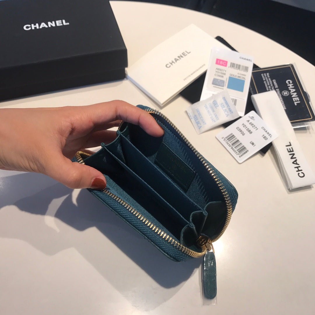 CC ZIPPED COIN BASIC PURSE 11 TEAL CALFSKIN GOLD ICON