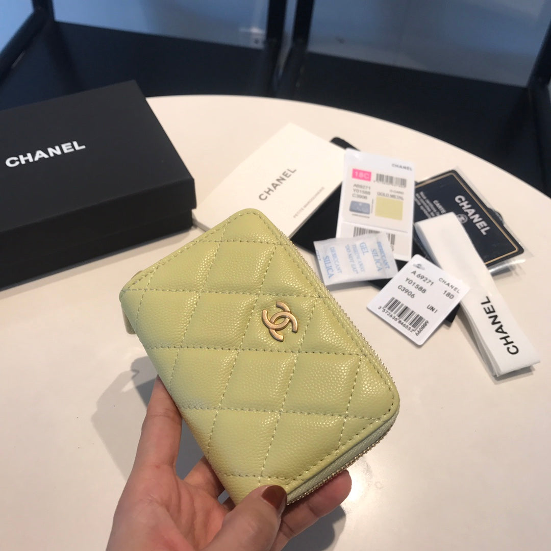 CC ZIPPED CAVIAR PURSE 11 LIGHT YELLOW CALFSKIN GOLD ICON