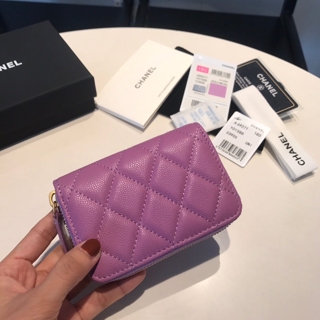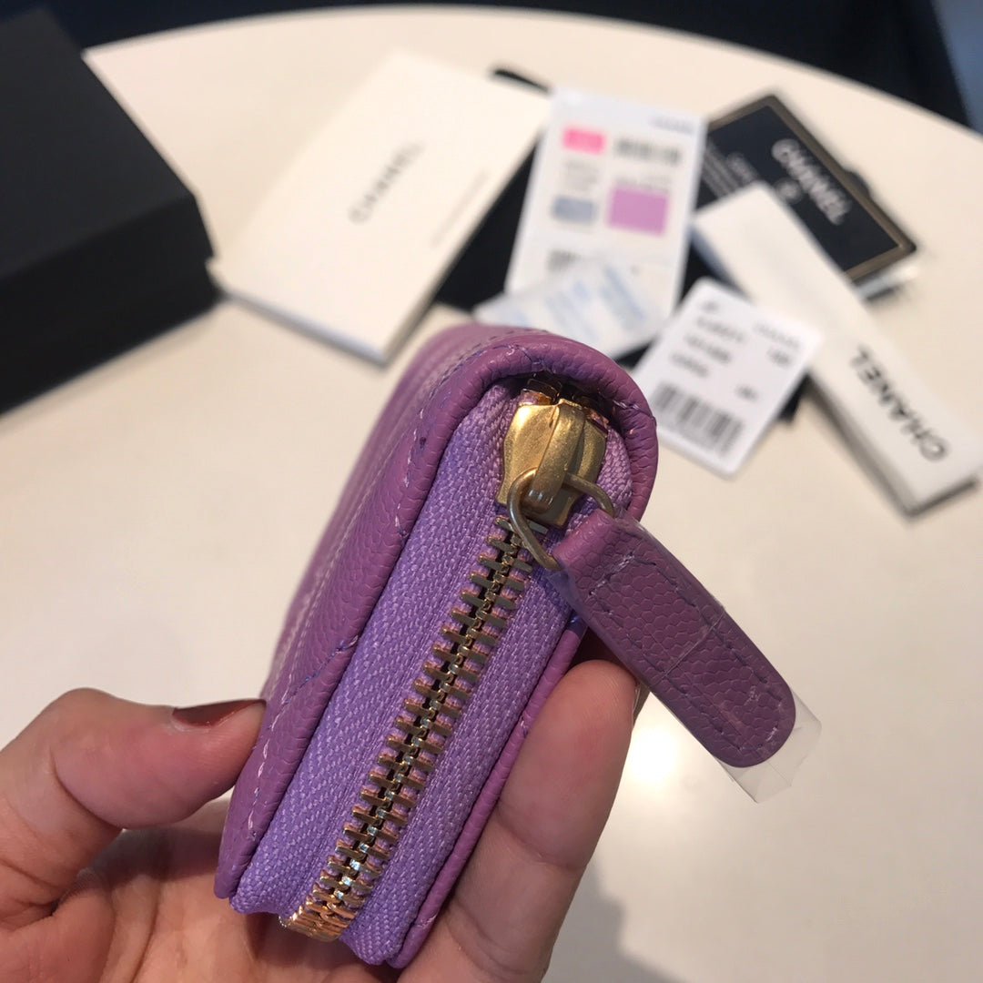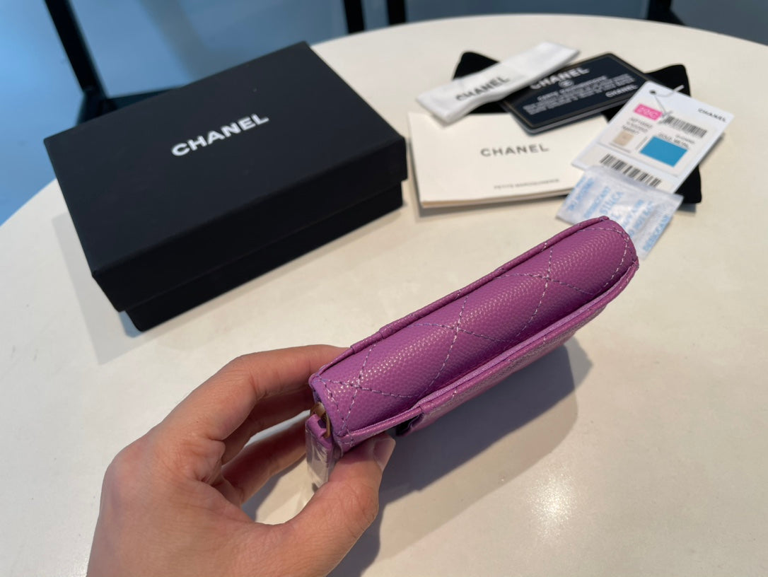 CC ZIPPED CAVIAR PURSE 11 PURPLE CALFSKIN GOLD ICON