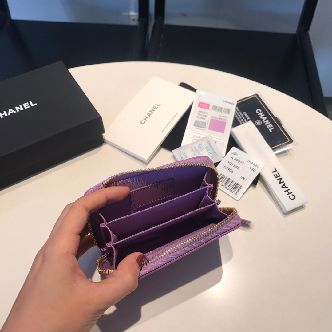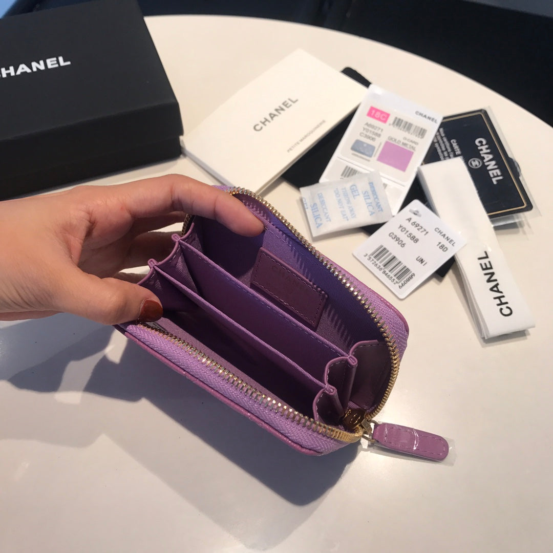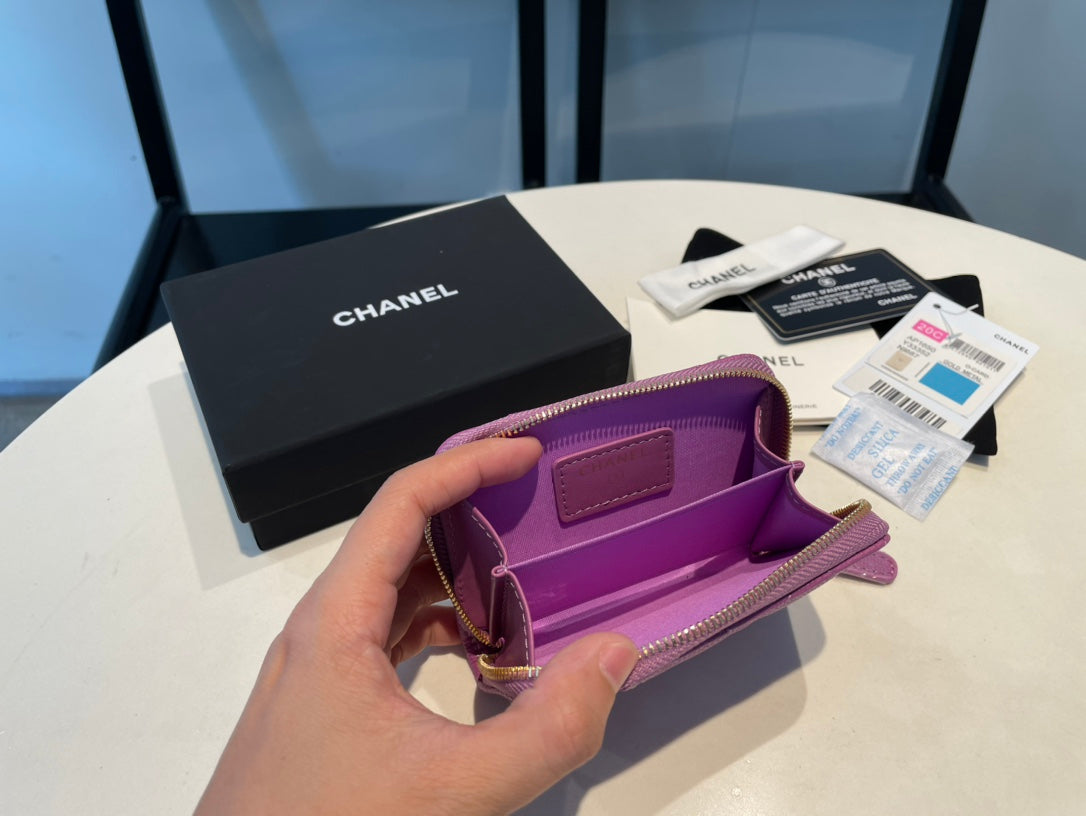 CC ZIPPED CAVIAR PURSE 11 PURPLE CALFSKIN GOLD ICON