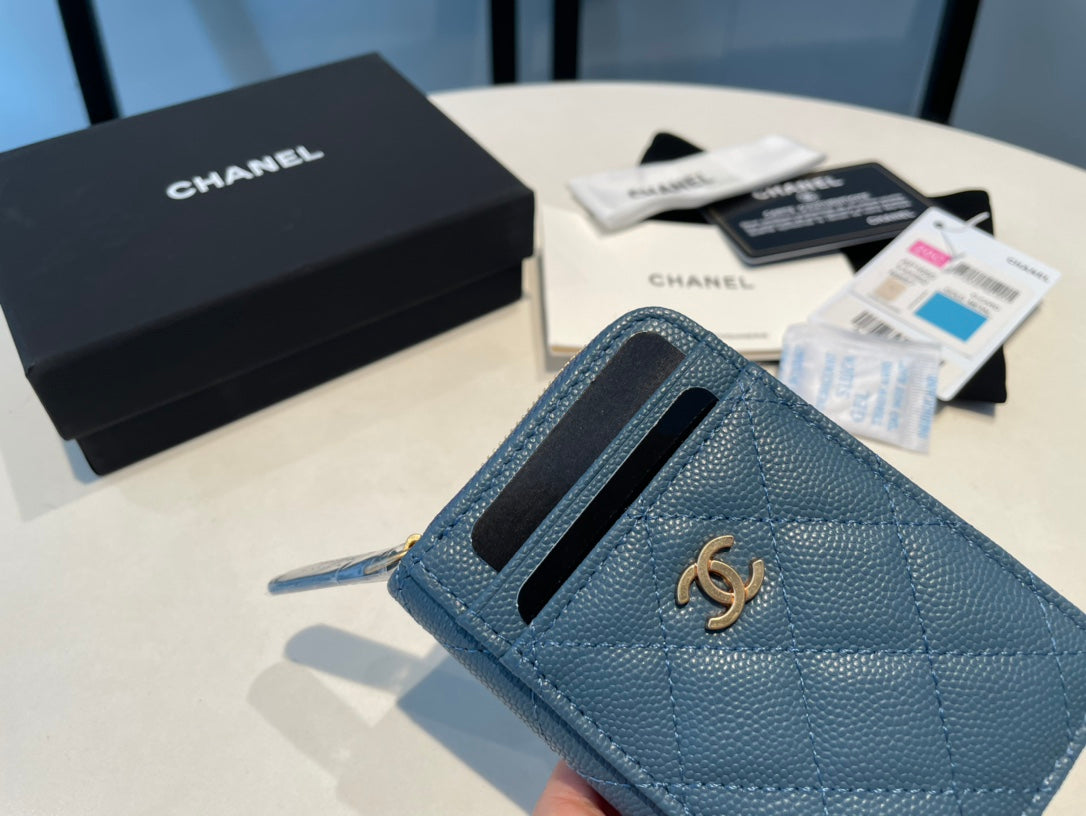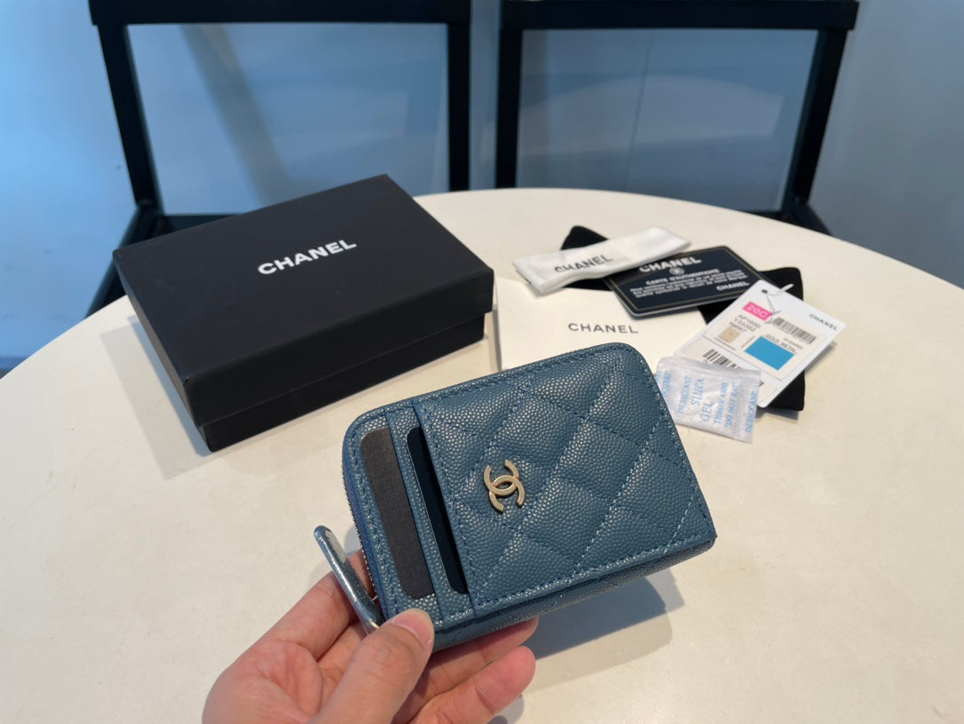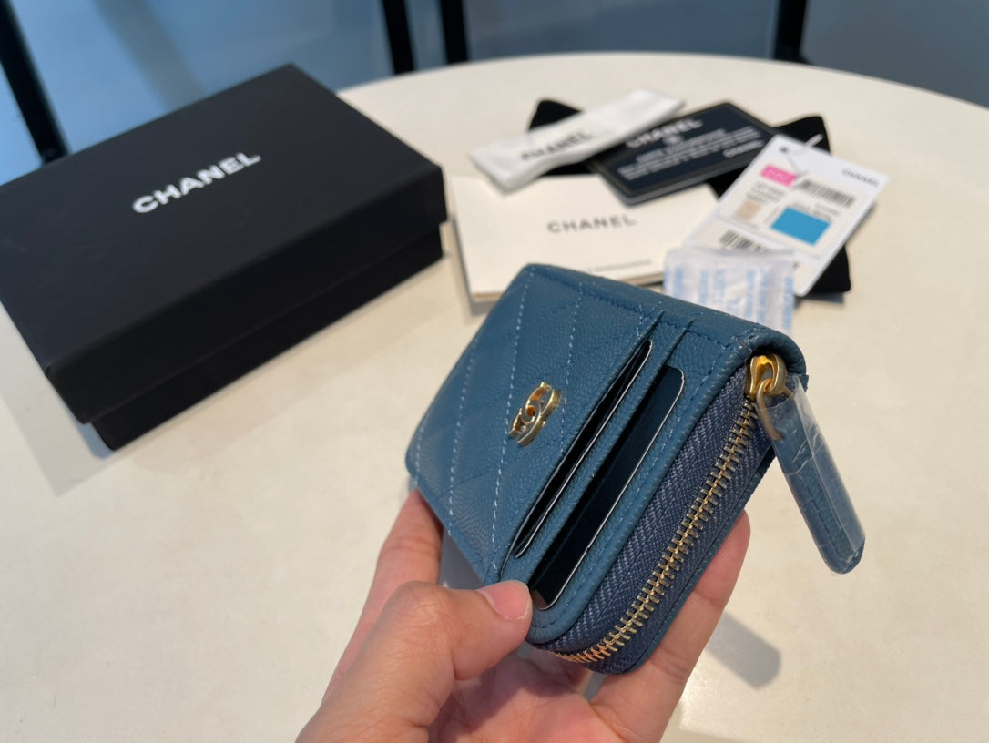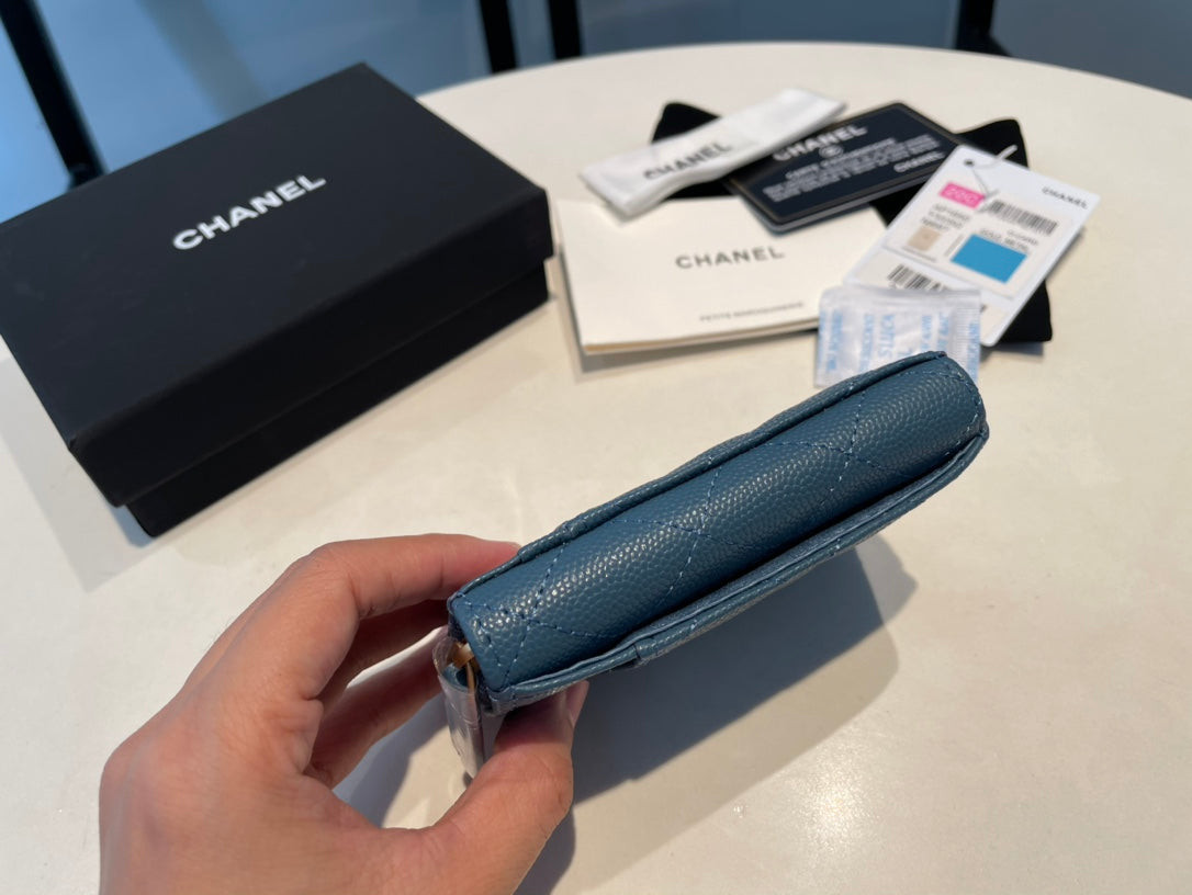 CC ZIPPED CAVIAR PURSE 11 SAPPHIRE CALFSKIN GOLD ICON