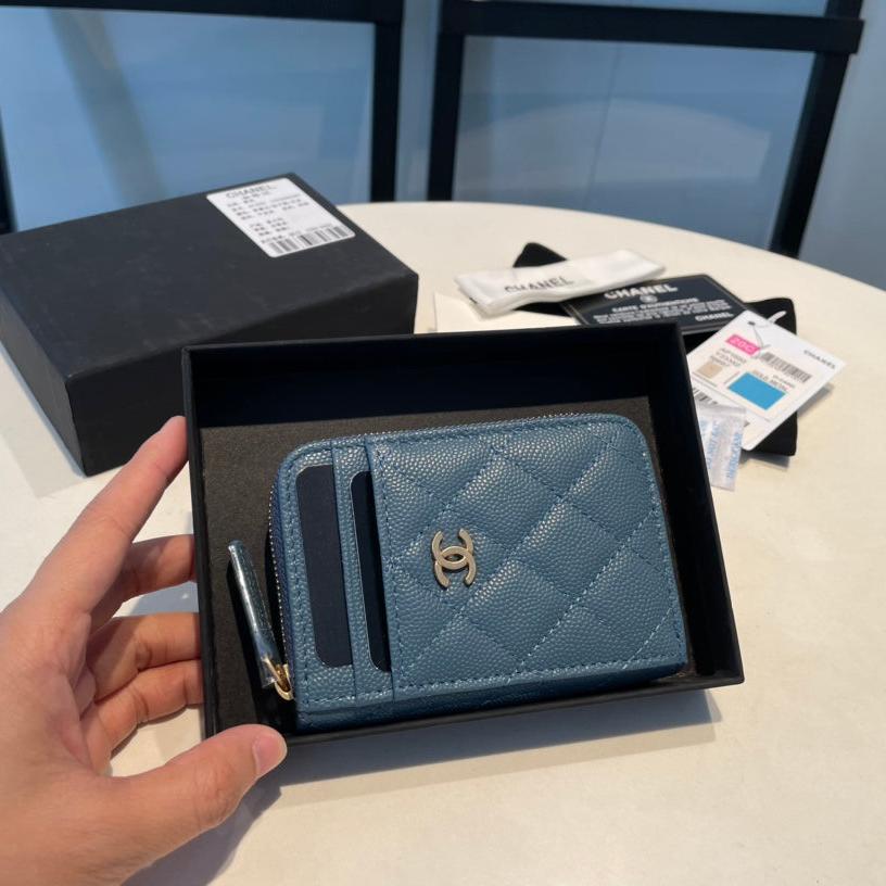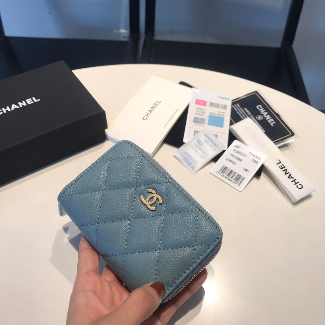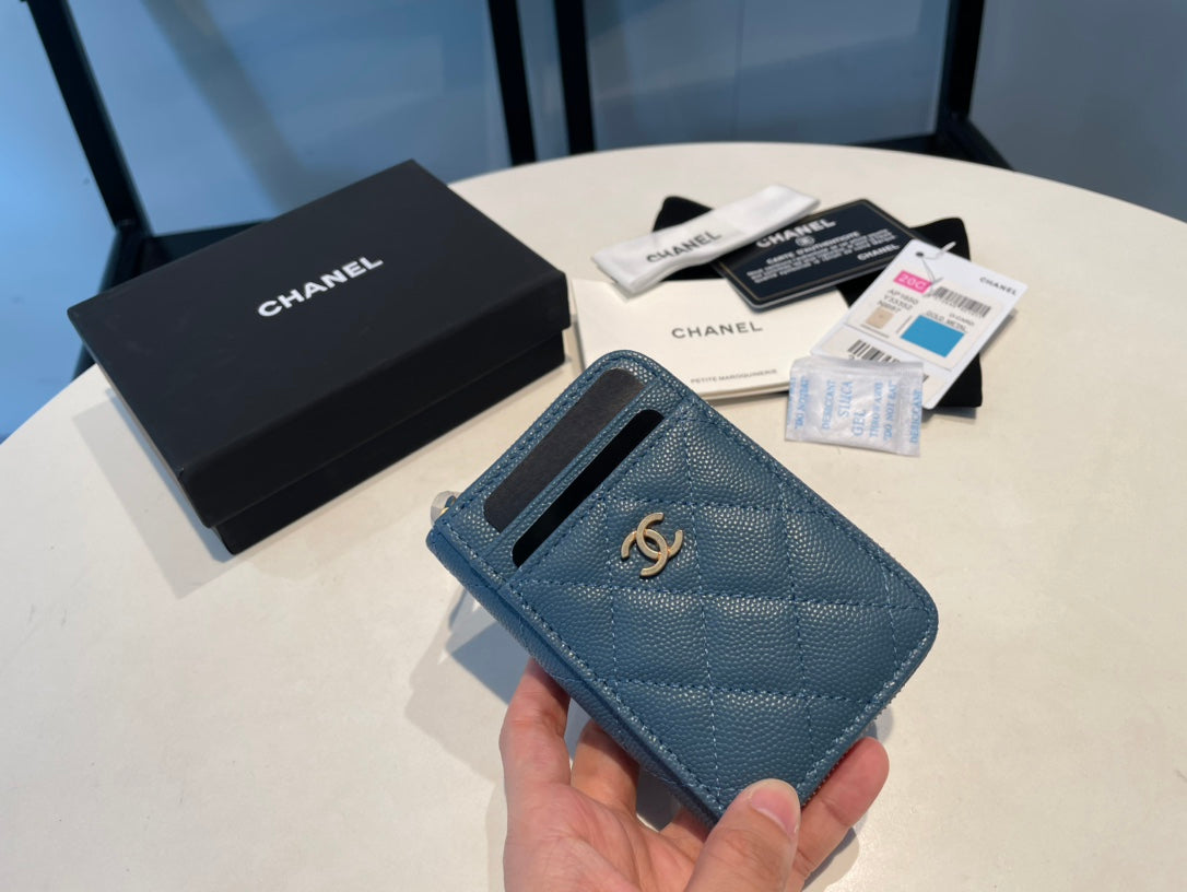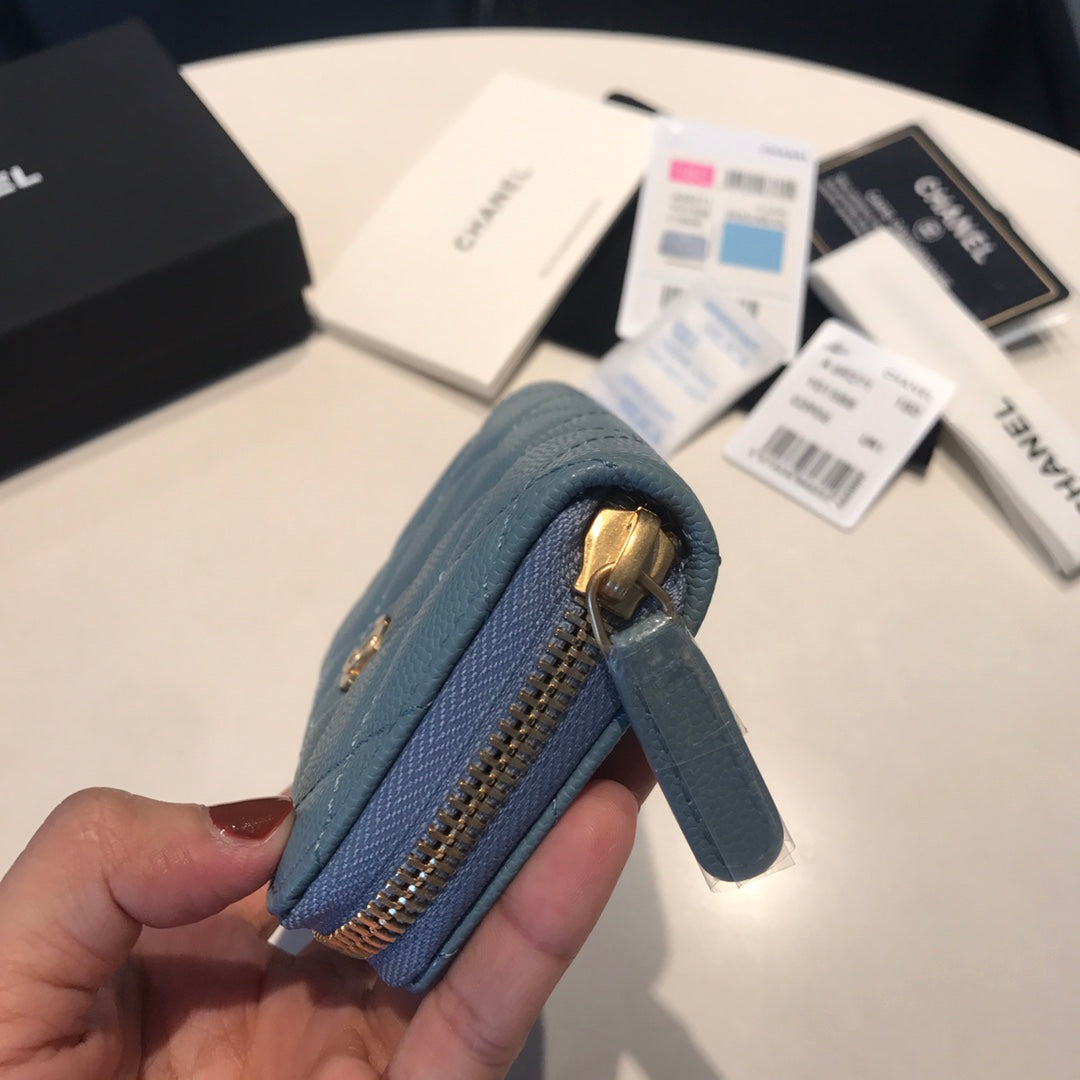 CC ZIPPED CAVIAR PURSE 11 SAPPHIRE CALFSKIN GOLD ICON