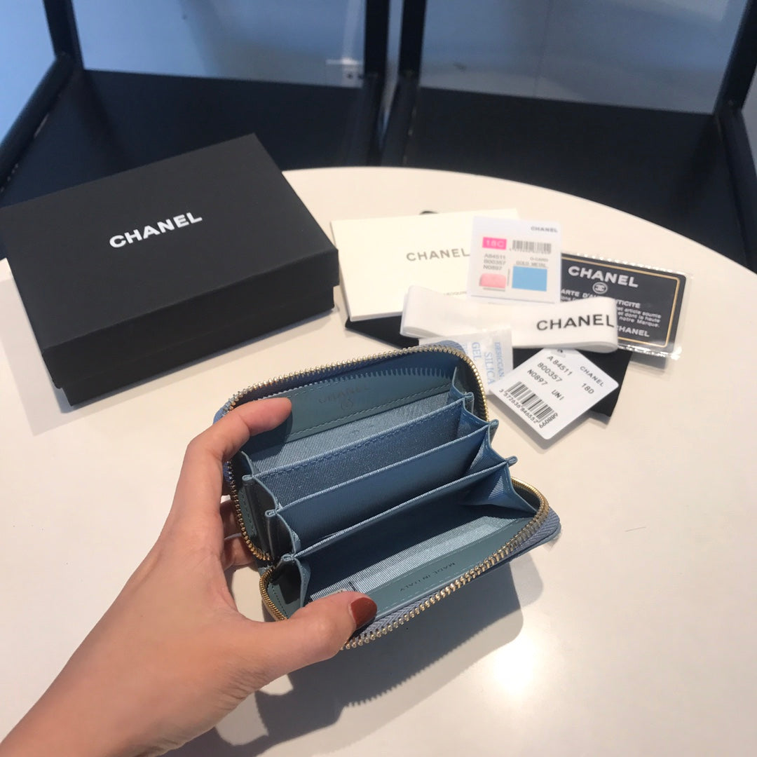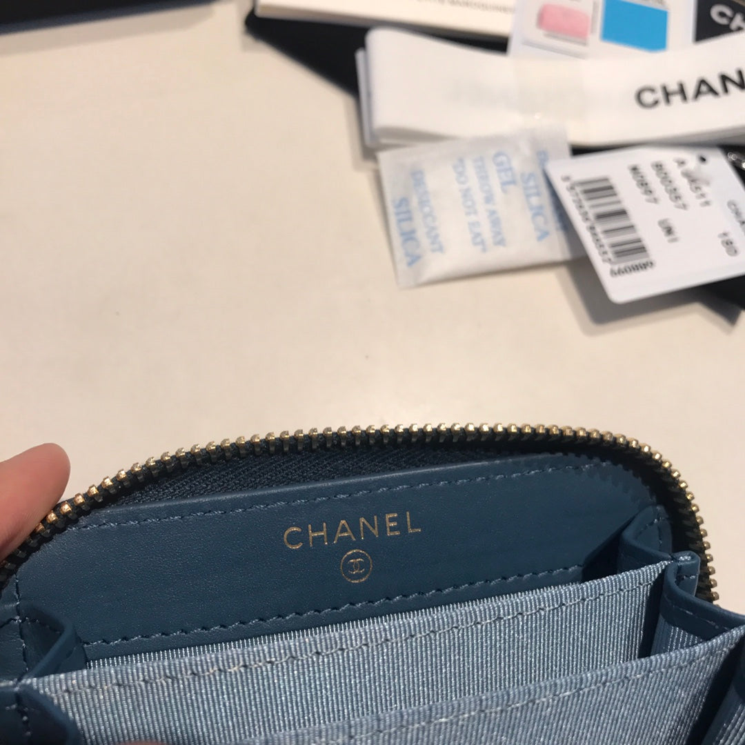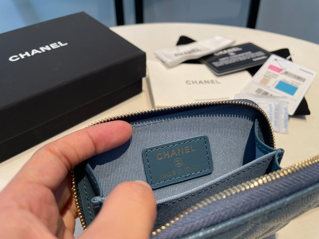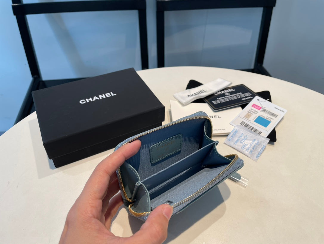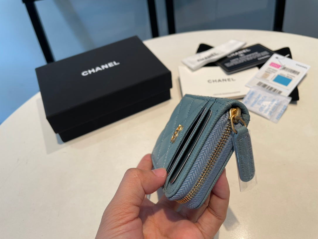 CC ZIPPED COIN BASIC PURSE 11 OCEAN CALFSKIN GOLD ICON