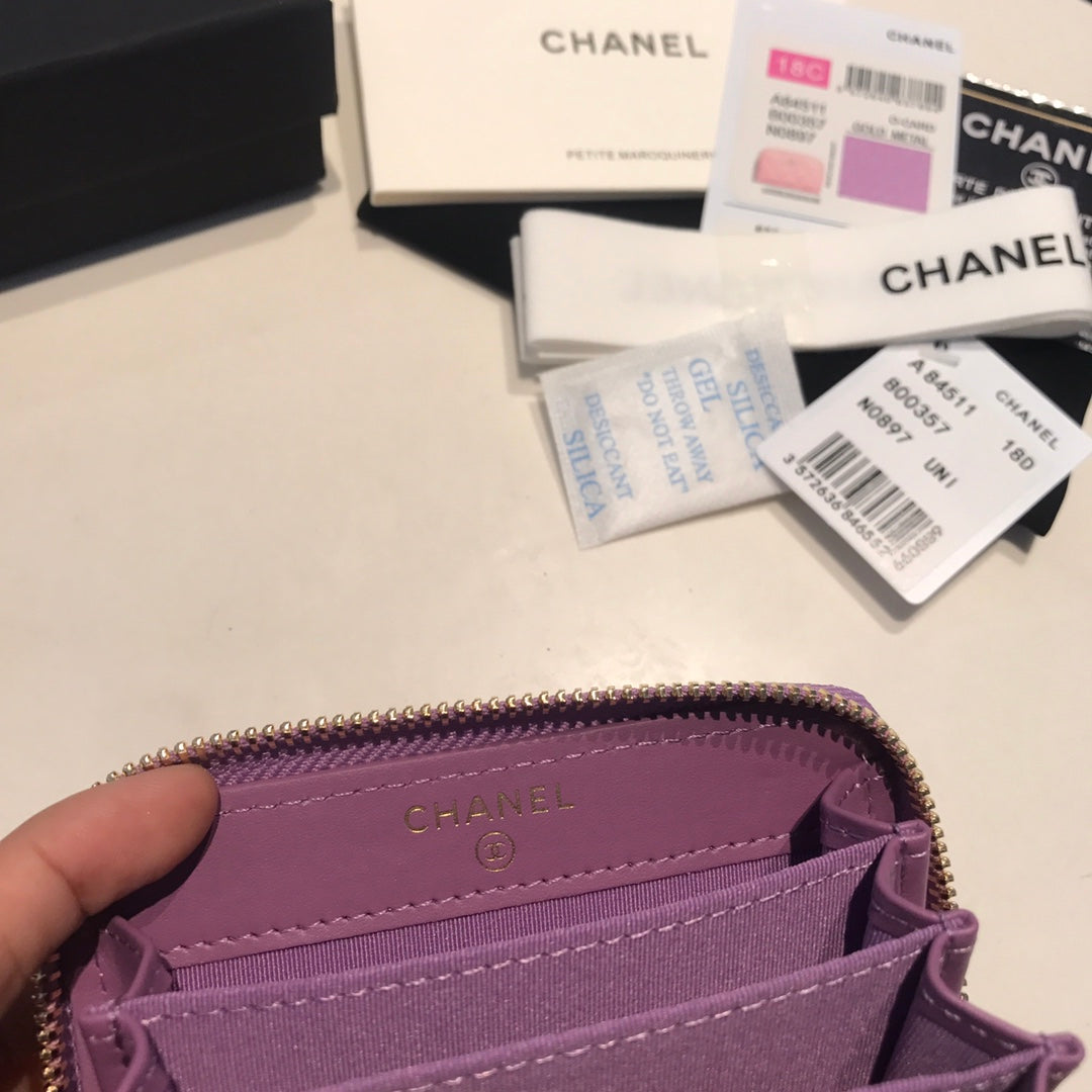 CC ZIPPED COIN BASIC PURSE 11 PURPLE CALFSKIN GOLD ICON
