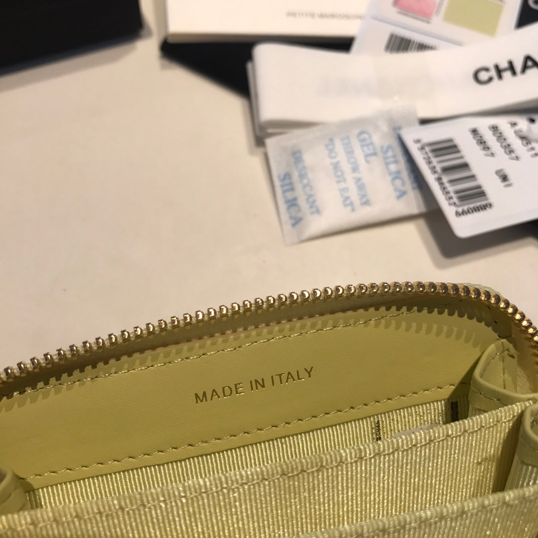 CC ZIPPED COIN BASIC PURSE 11 LIGHT YELLOW CALFSKIN GOLD ICON
