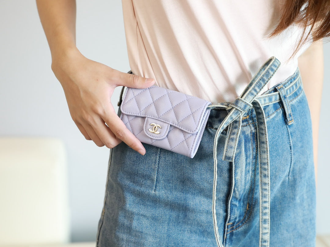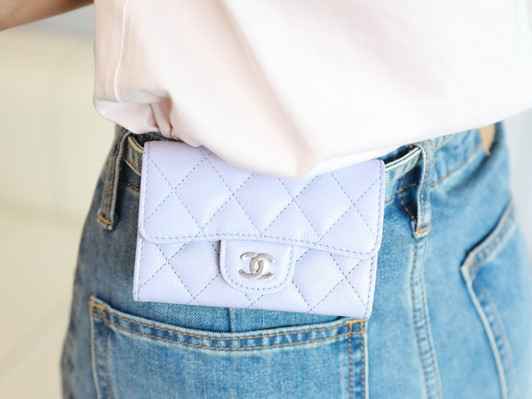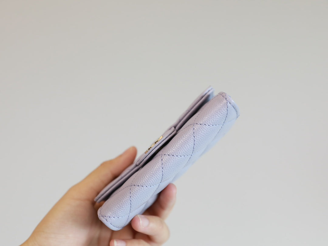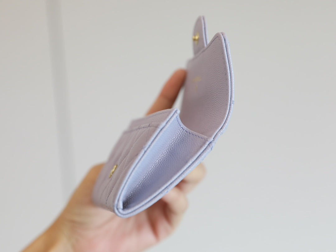 CC FLAP CARD HOLDER 11.3 LIGHT PURPLE GRAINED CALFSKIN GOLD ICON