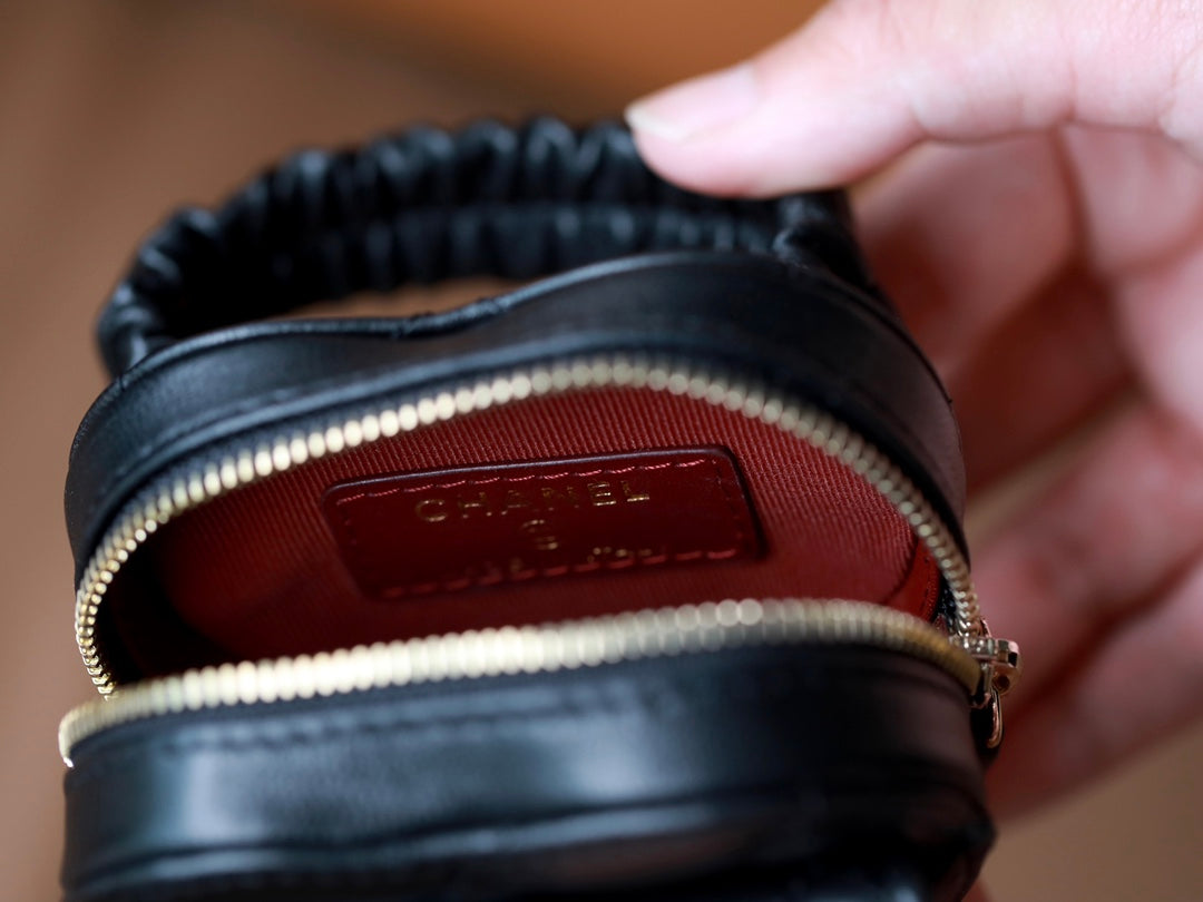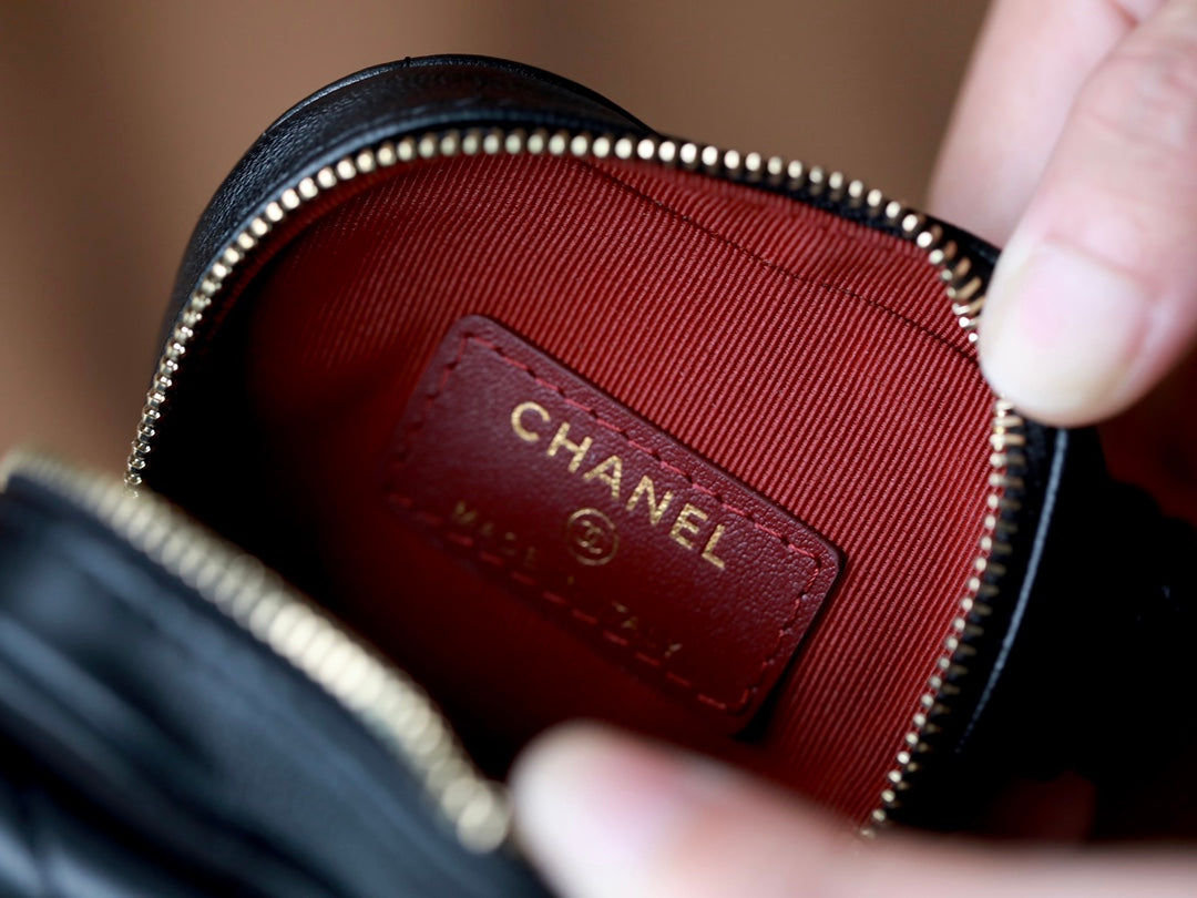 CC HEART COIN PURSE 8.5 BLACK CALFSKIN