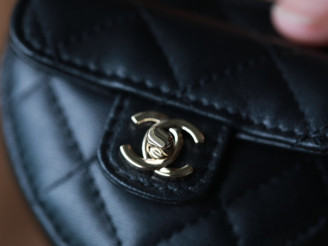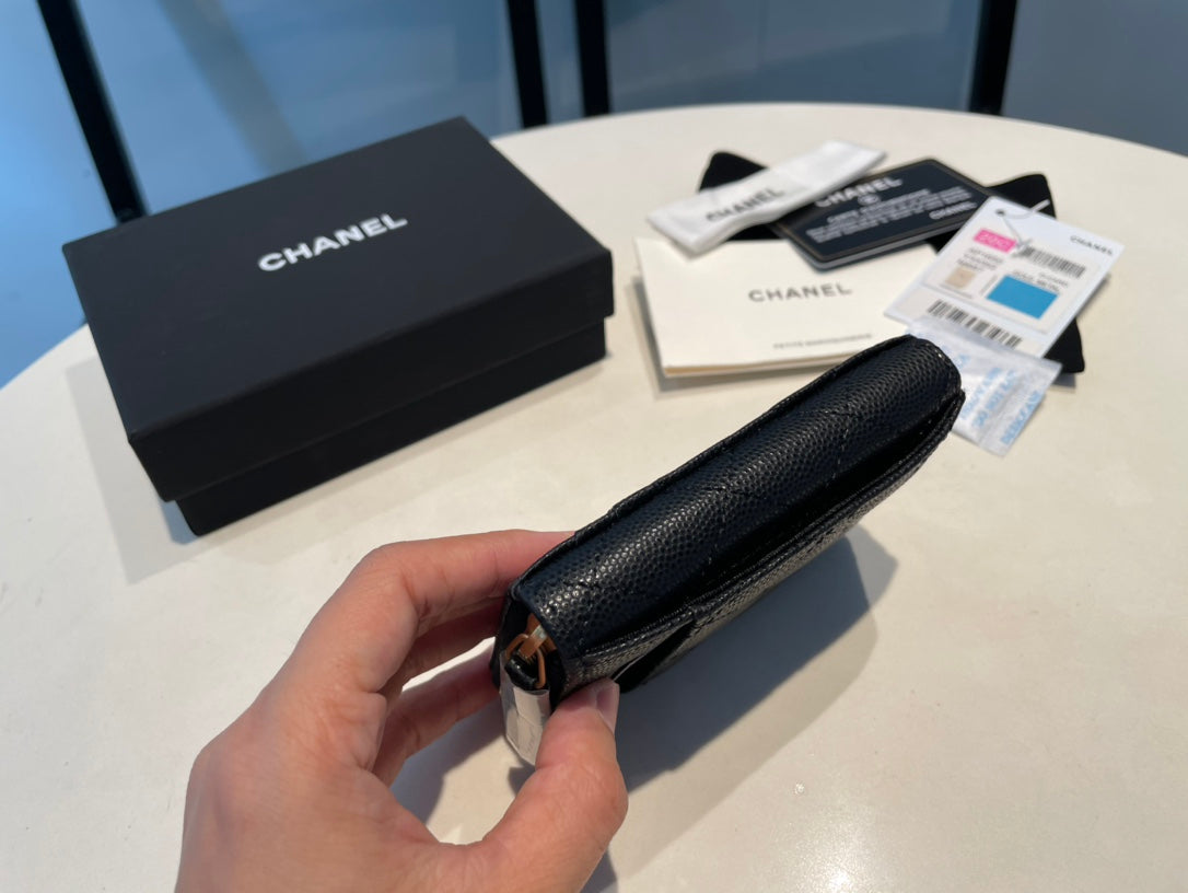 CC ZIPPED CAVIAR PURSE 11 BLACK CALFSKIN GOLD ICON