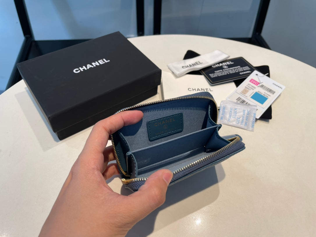 CC ZIPPED COIN PURSE 11 OCEAN GRAINED CALFSKIN