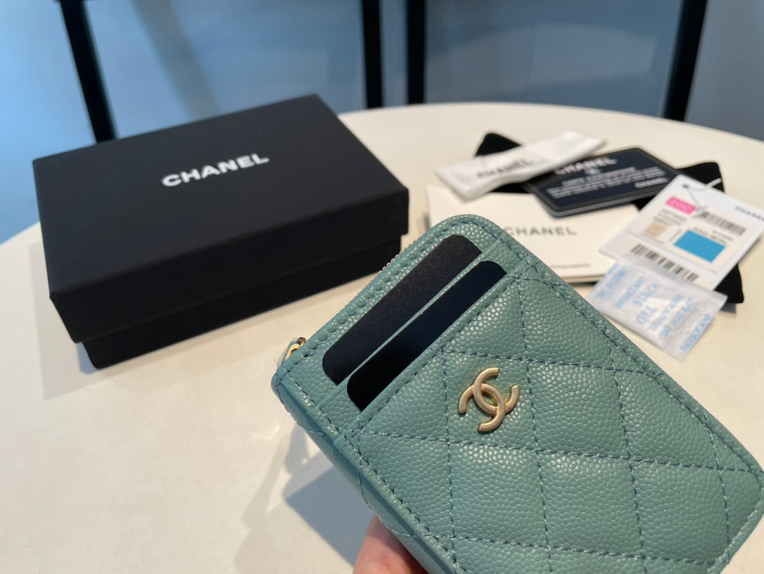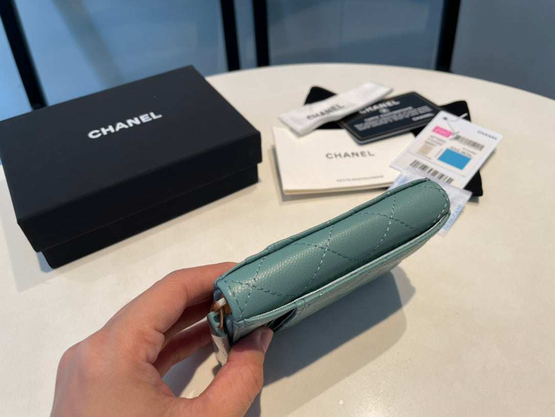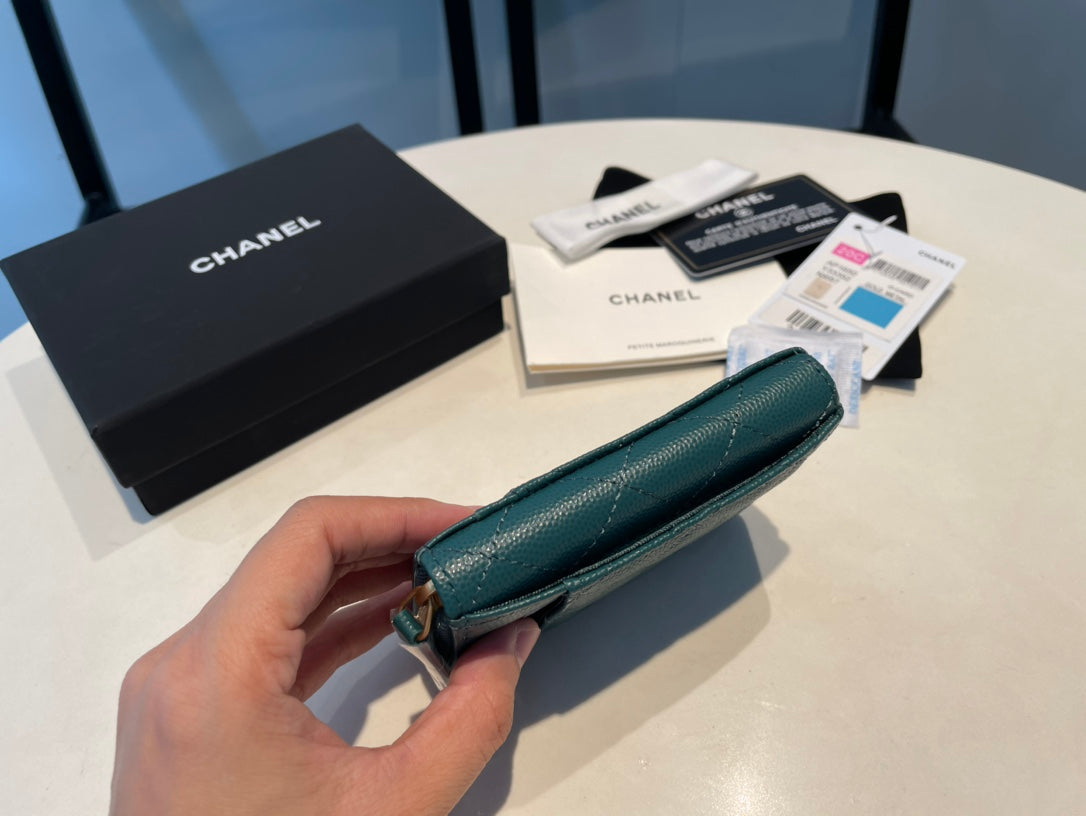 CC ZIPPED CAVIAR PURSE 11 TEAL CALFSKIN GOLD ICON