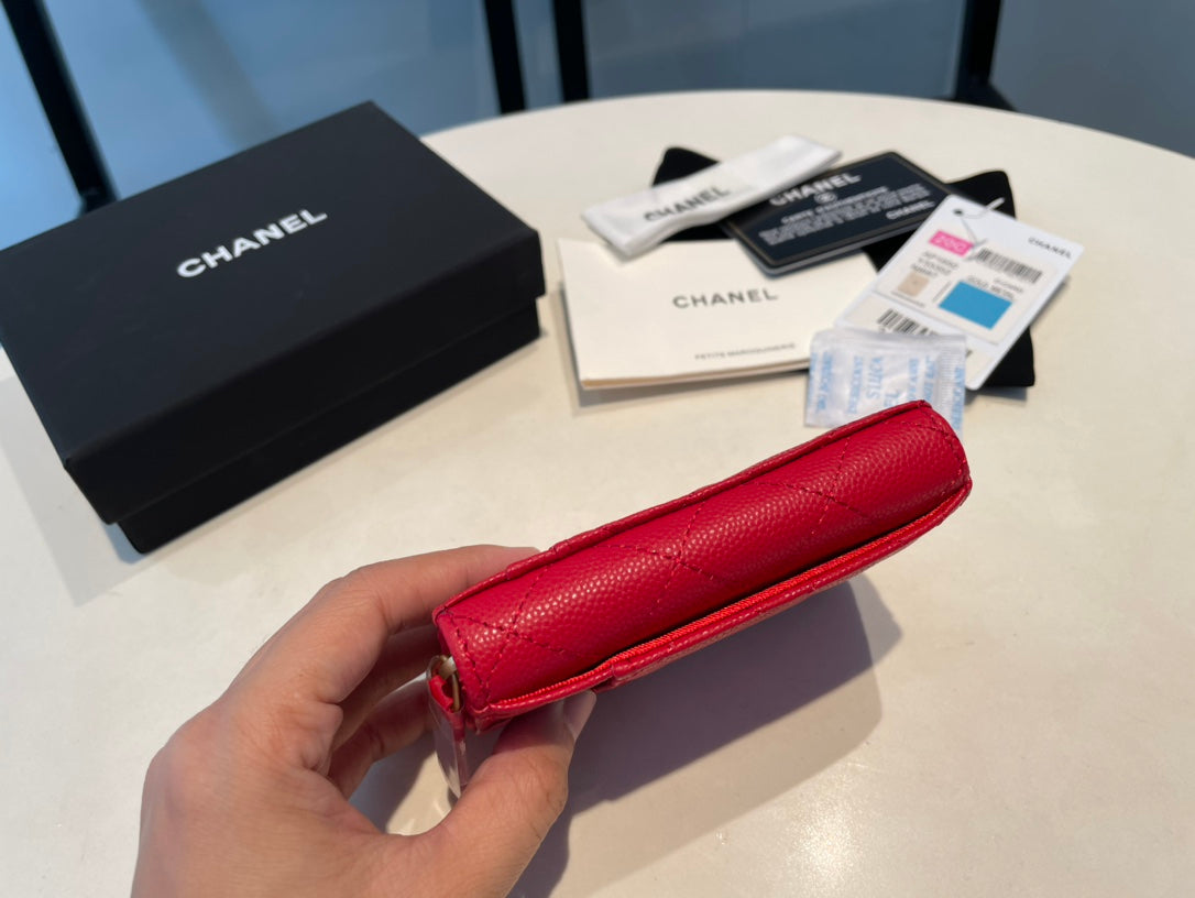 CC ZIPPED CAVIAR PURSE 11 RED CALFSKIN GOLD ICON