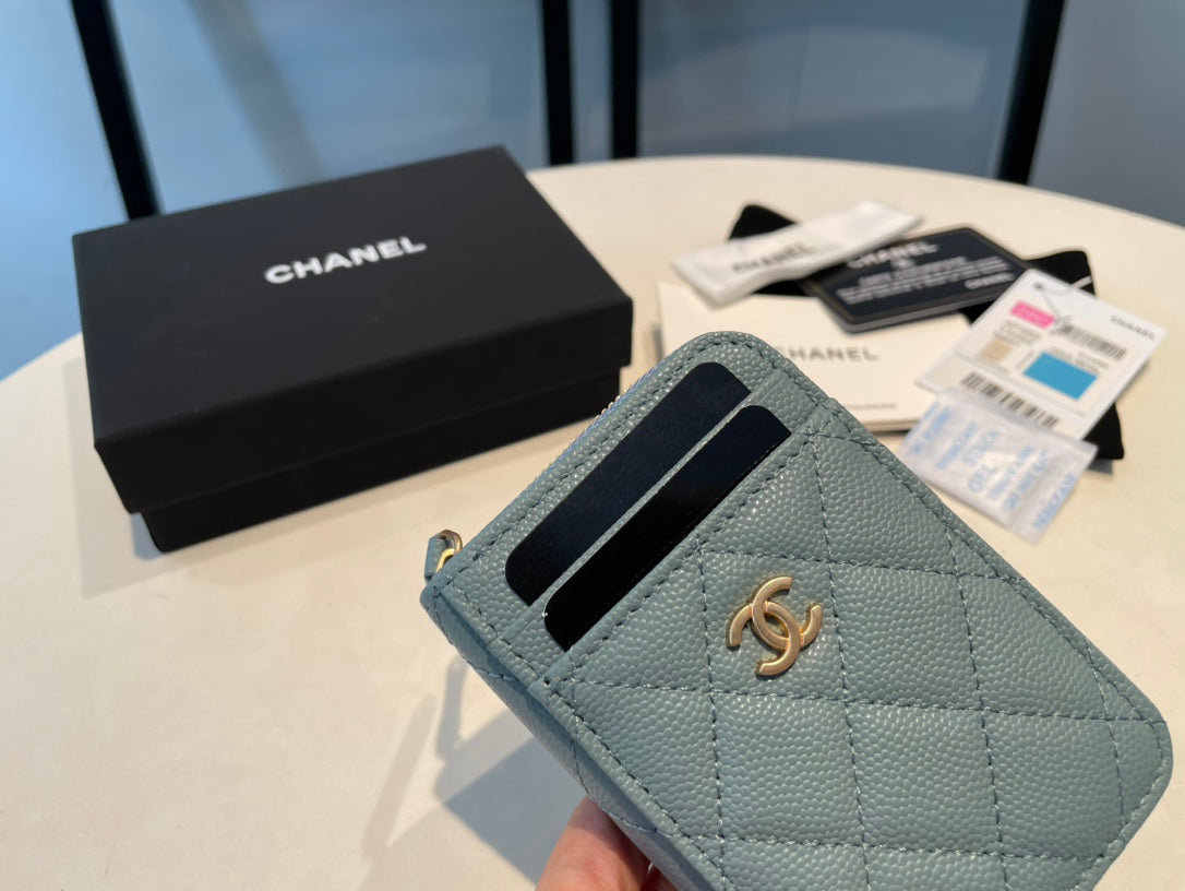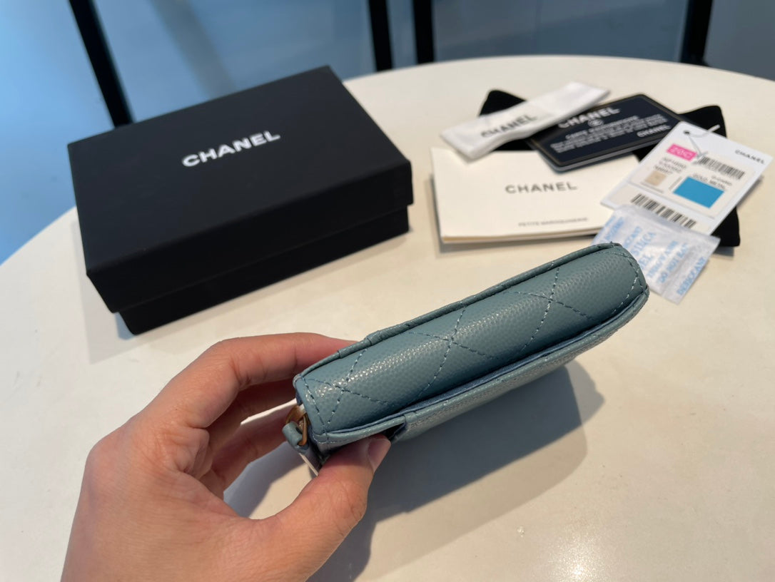 CC ZIPPED CAVIAR PURSE 11 OCEAN CALFSKIN GOLD ICON
