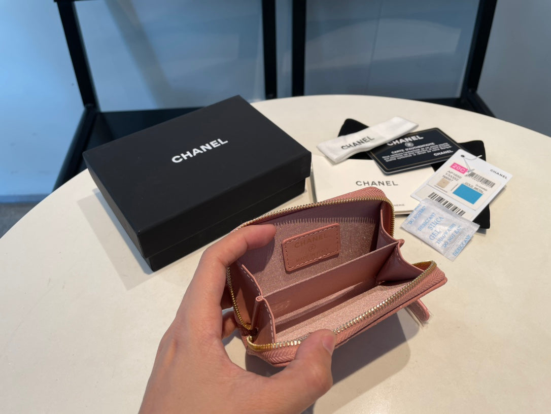 CC ZIPPED COIN BASIC PURSE 11 PEACH CALFSKIN GOLD ICON