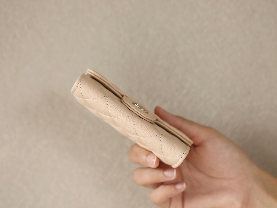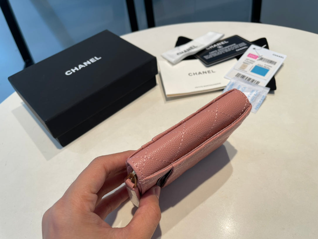 CC ZIPPED CAVIAR PURSE 11 PEACH CALFSKIN GOLD ICON