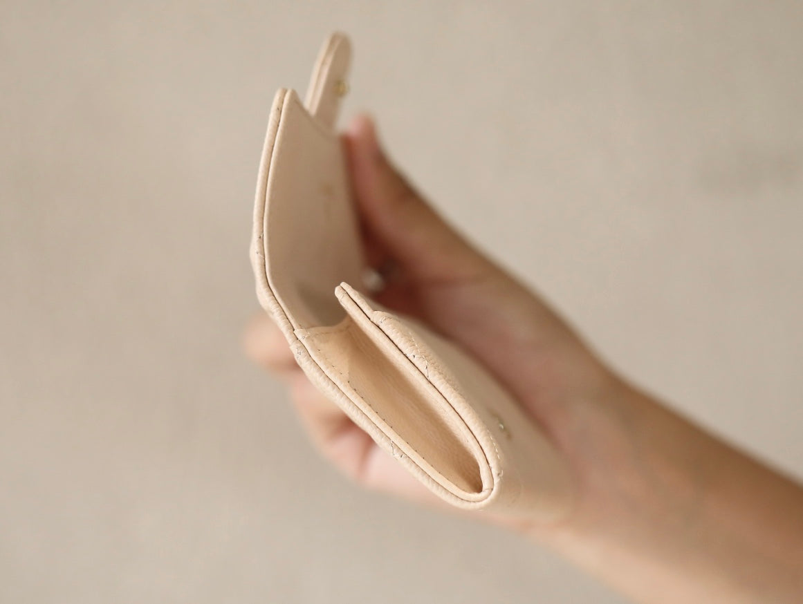 CC FLAP CARD HOLDER 11.3 BEIGE GRAINED CALFSKIN GOLD ICON
