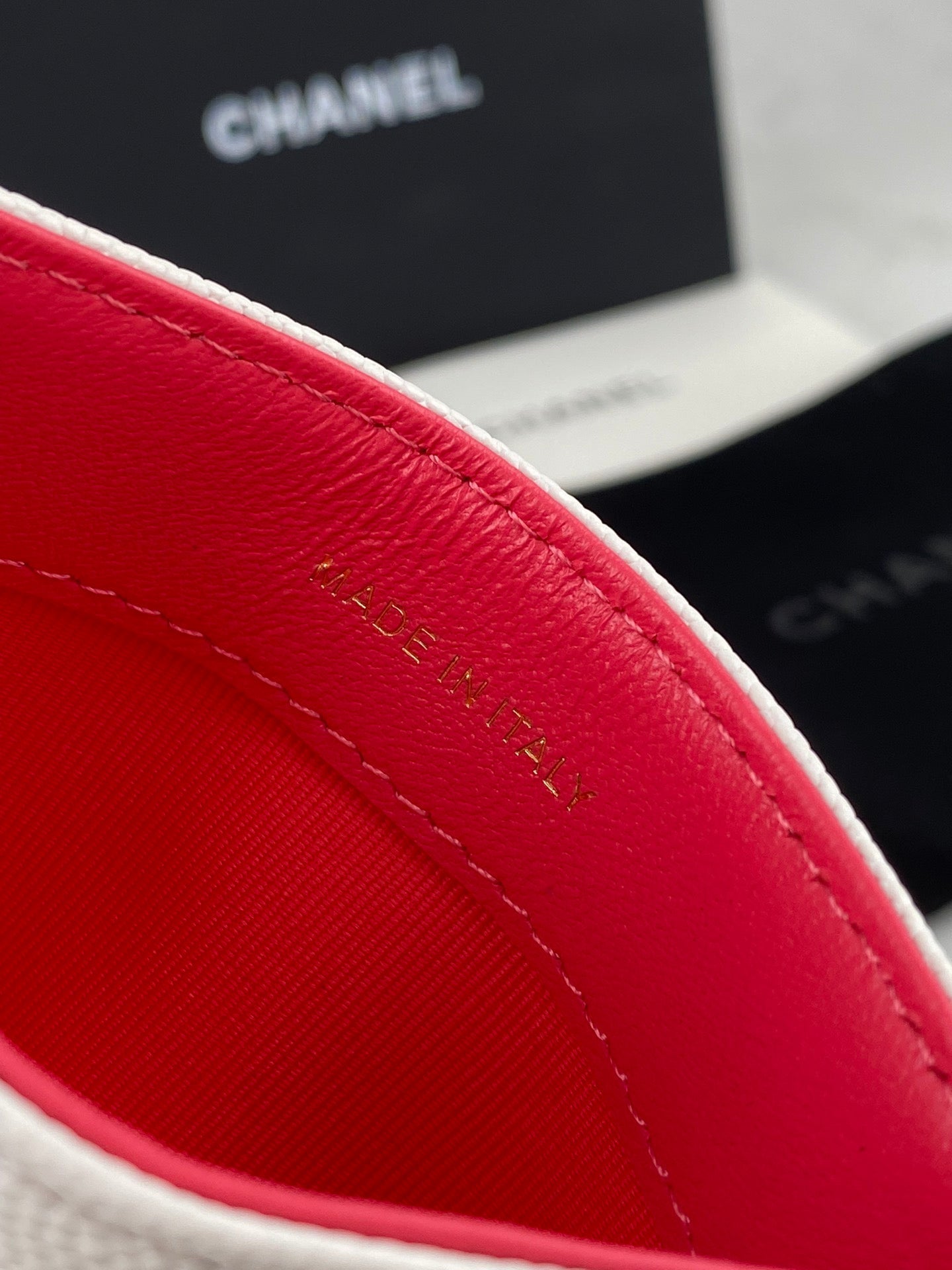 CC CARD HOLDER 19.5 WHITE GRAINED CALFSKIN GOLD ICON