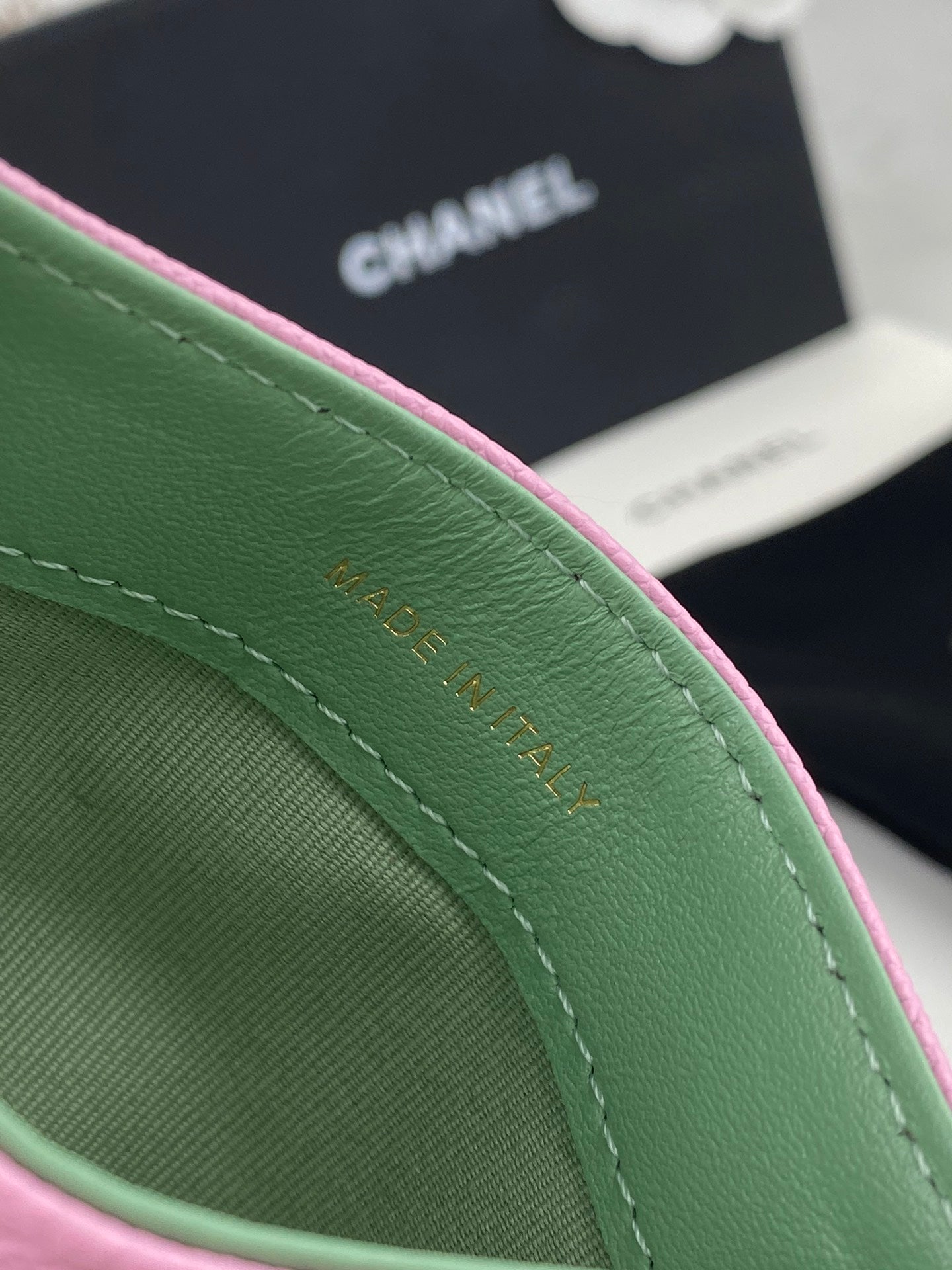 CC FLAP CARD HOLDER 11 EMERALD GRAINED CALFSKIN GOLD ICON