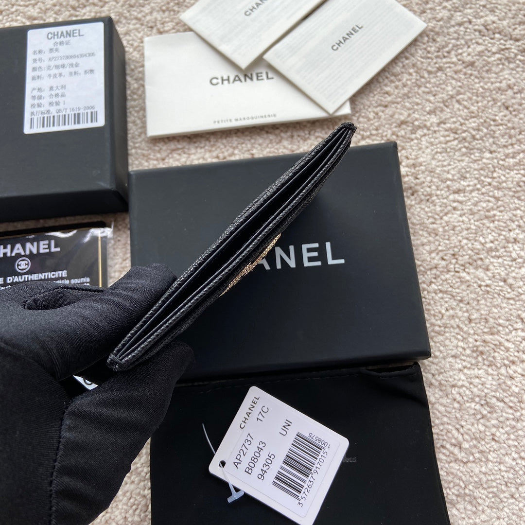 cc 19 zipped wallet 20cm black calfskin gold hardware