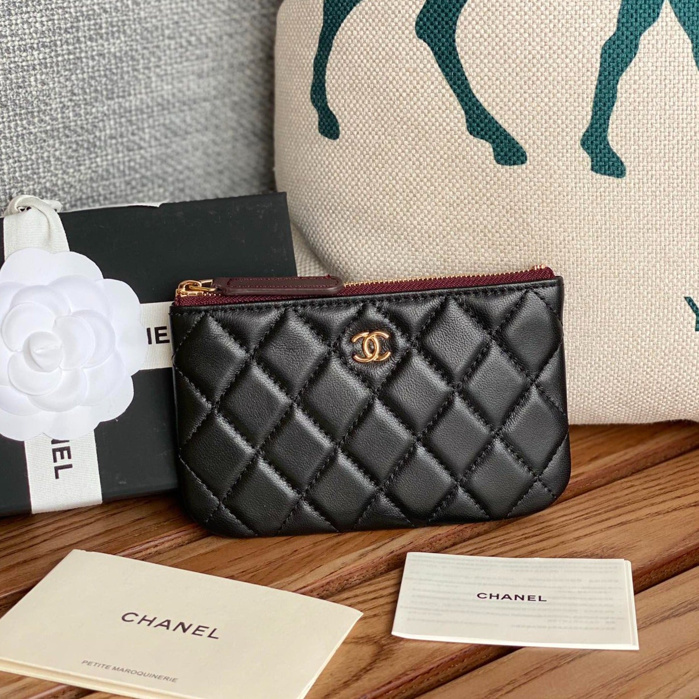 cc zipped wallet 20cm black quilted calfskin gold hardware