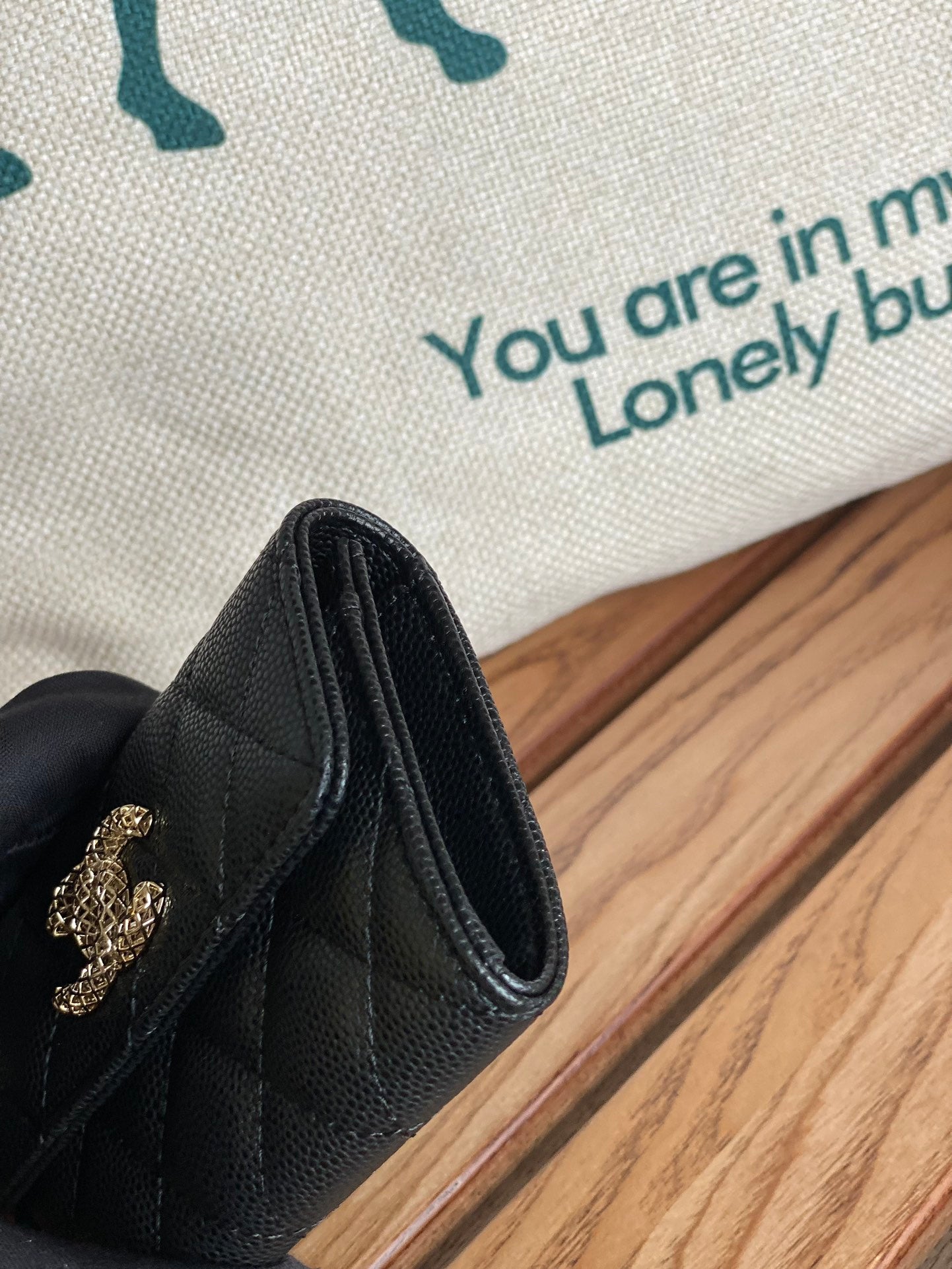 cc zipped wallet 7.5cm black calfksin gold hardware