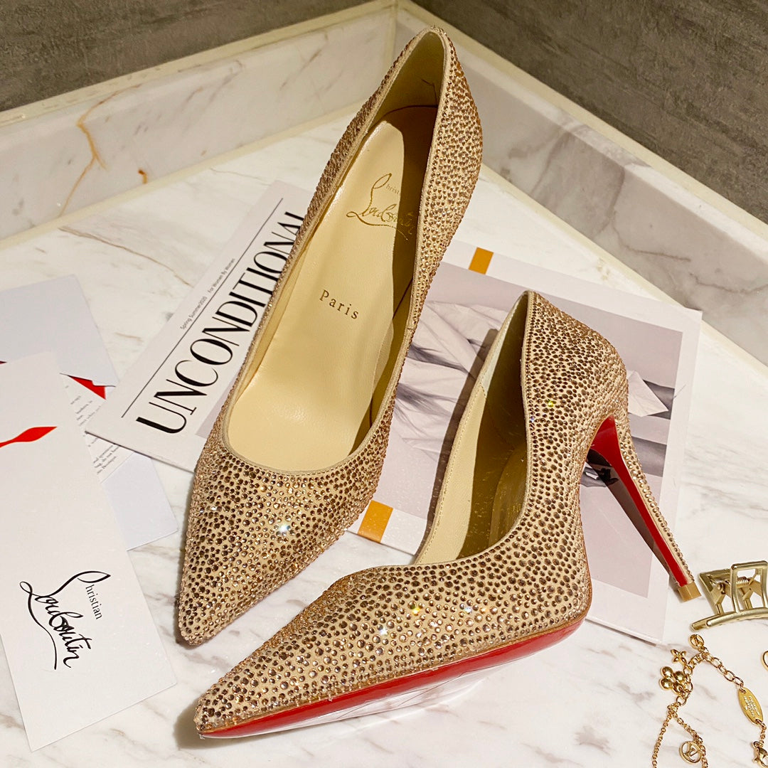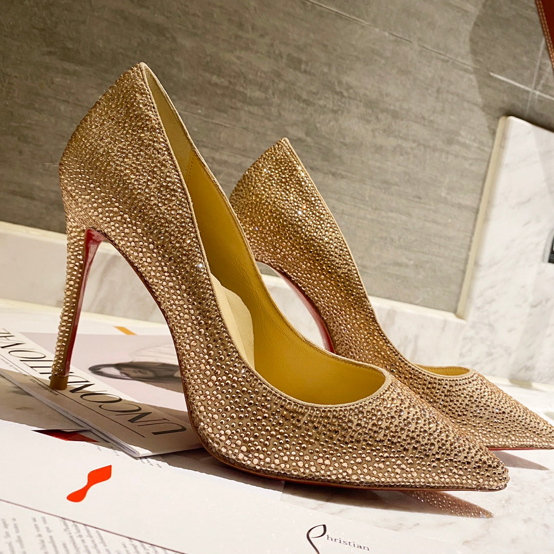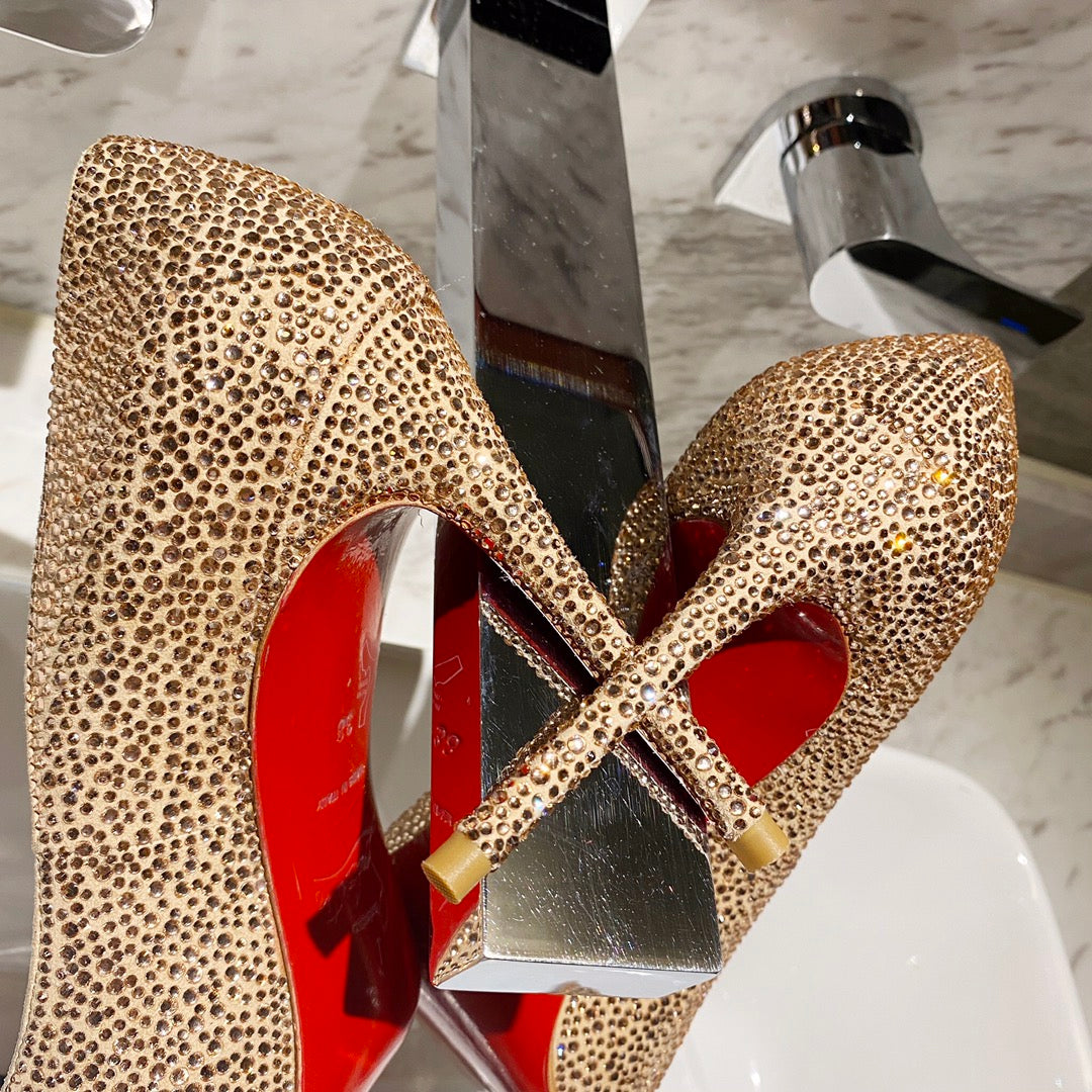 CL Kate Strass Degrade Pumps 100mm Suede Beige