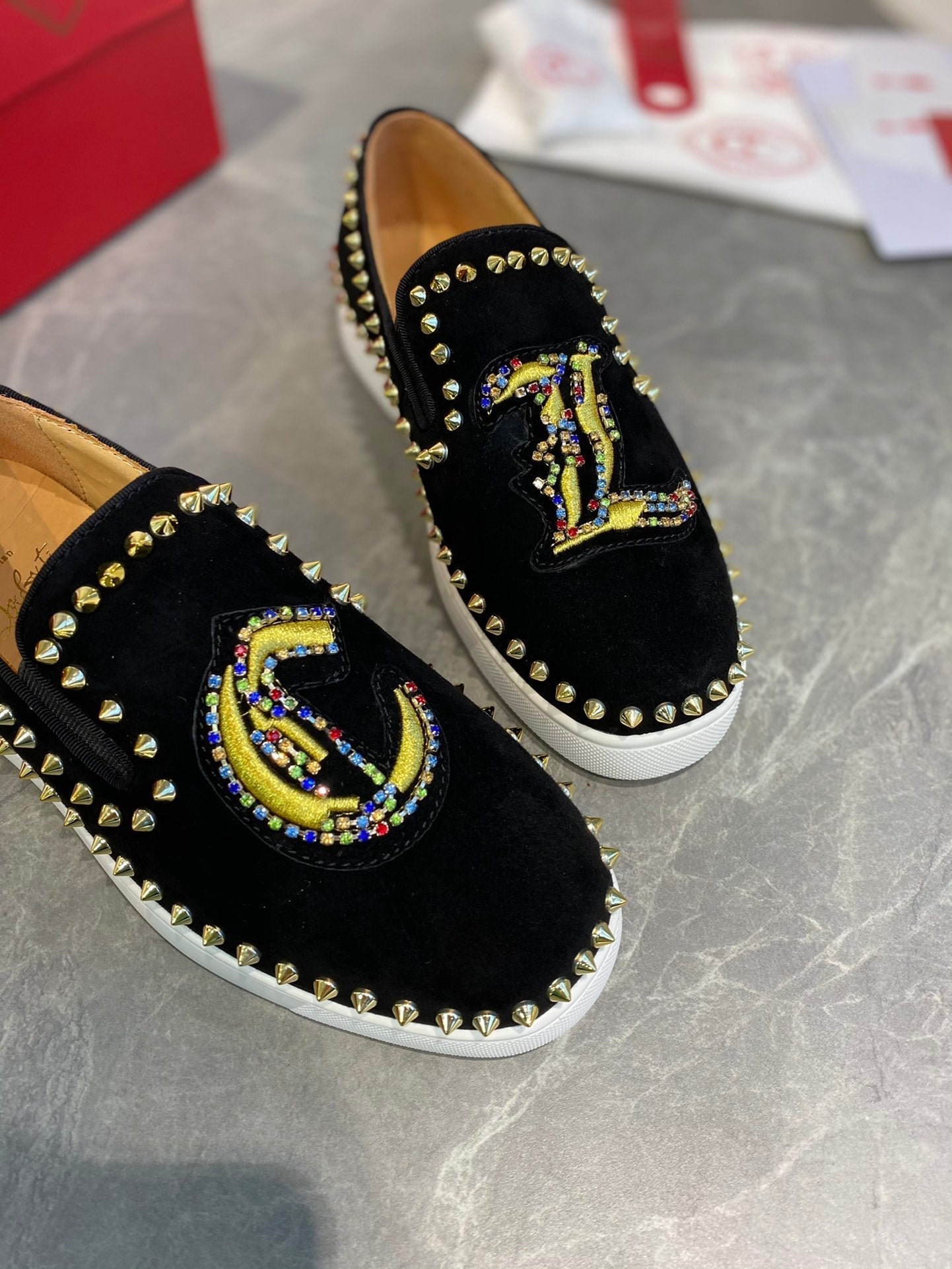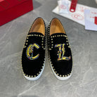 CL Loafers with Logo Black Velvet and Spikes 242384