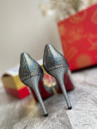 CL Very Strass Peep Toe Pumps 120mm PVC and Glitter Silver