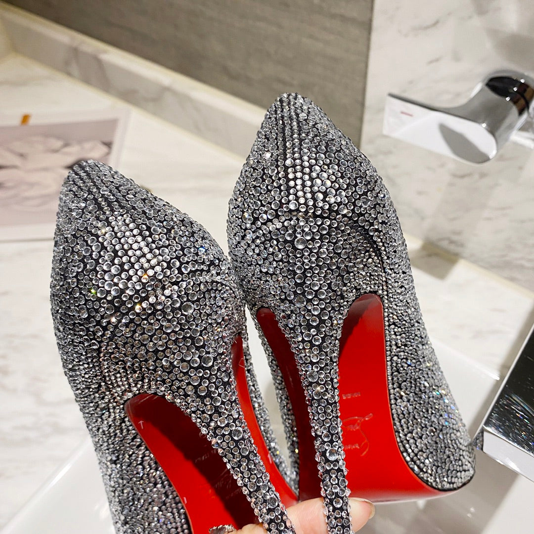 CL Anjalina Spike Pump 85mm Glitter Silver