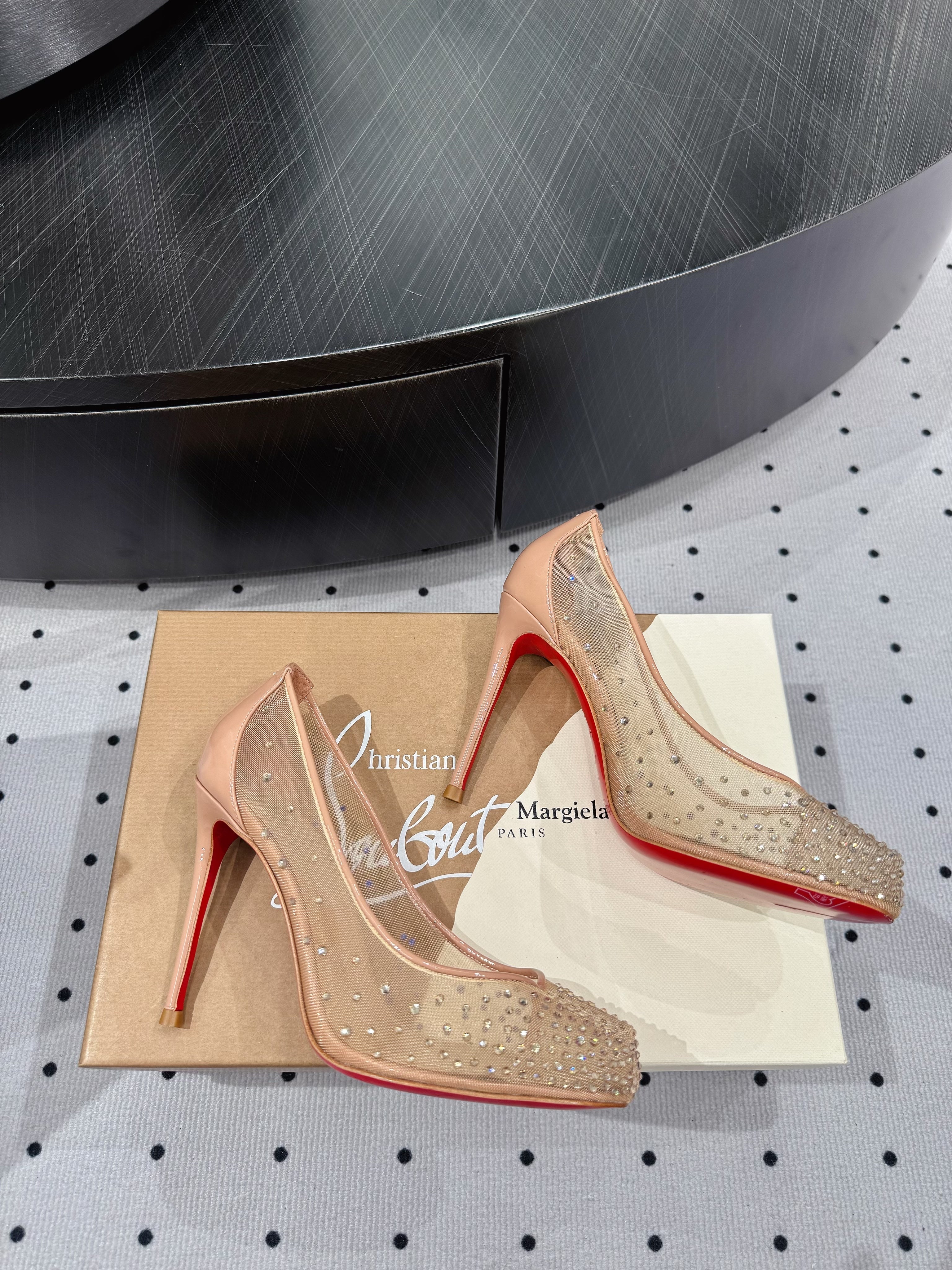CL x Margiela 25 Diamond Pumps Beige Fabric Lace Swarovski 296040