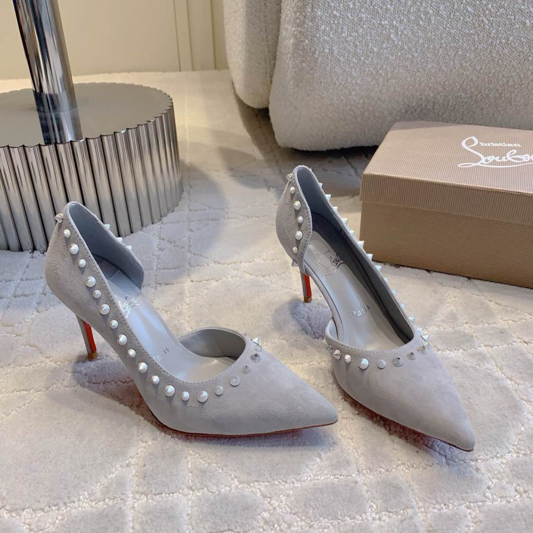 CL Irishell 85 Studded d'Orsay Pumps Cream Suede 177131