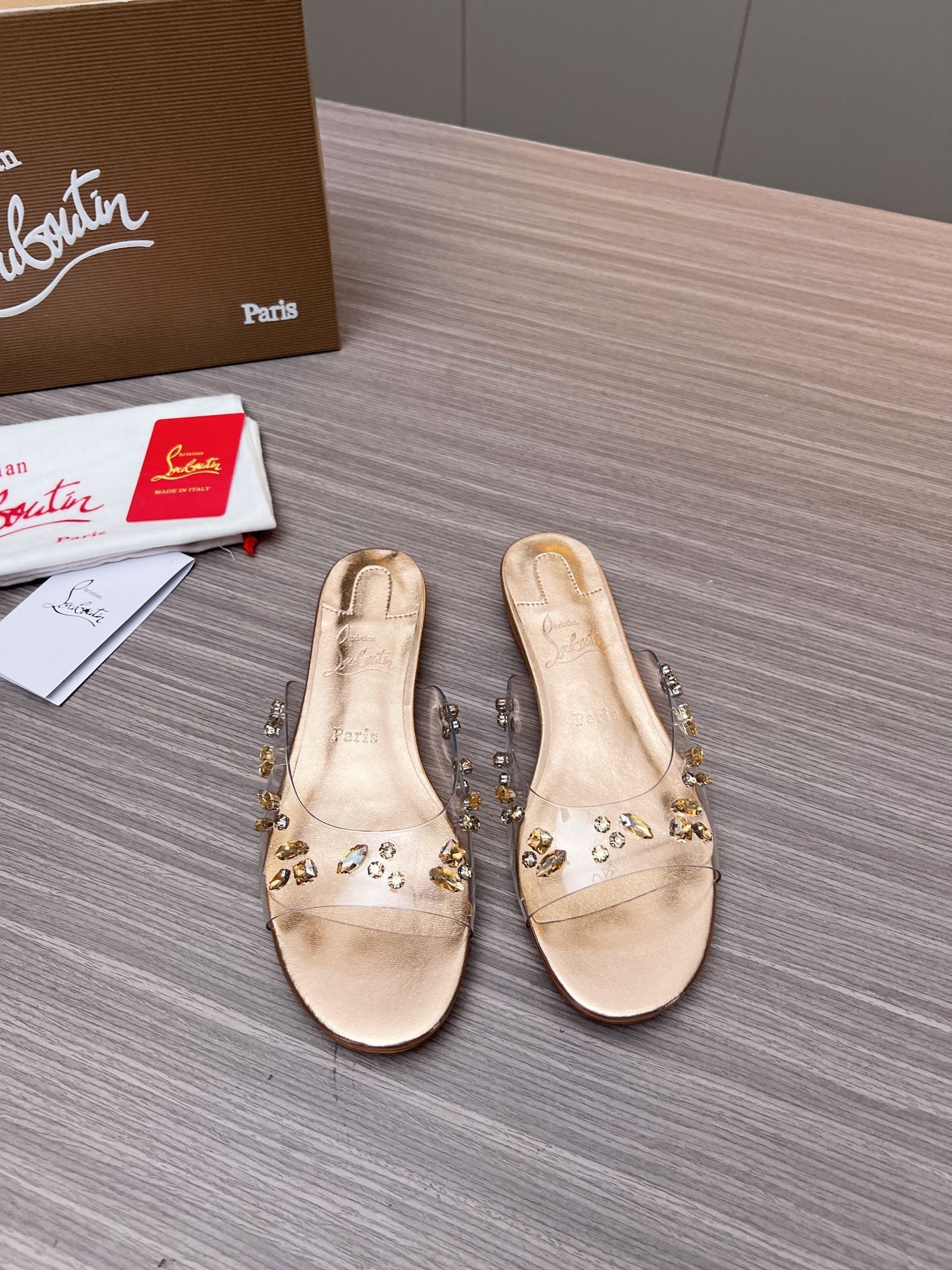 CL Slippers Gold PVC and Iridescent Nappa Leather 251048