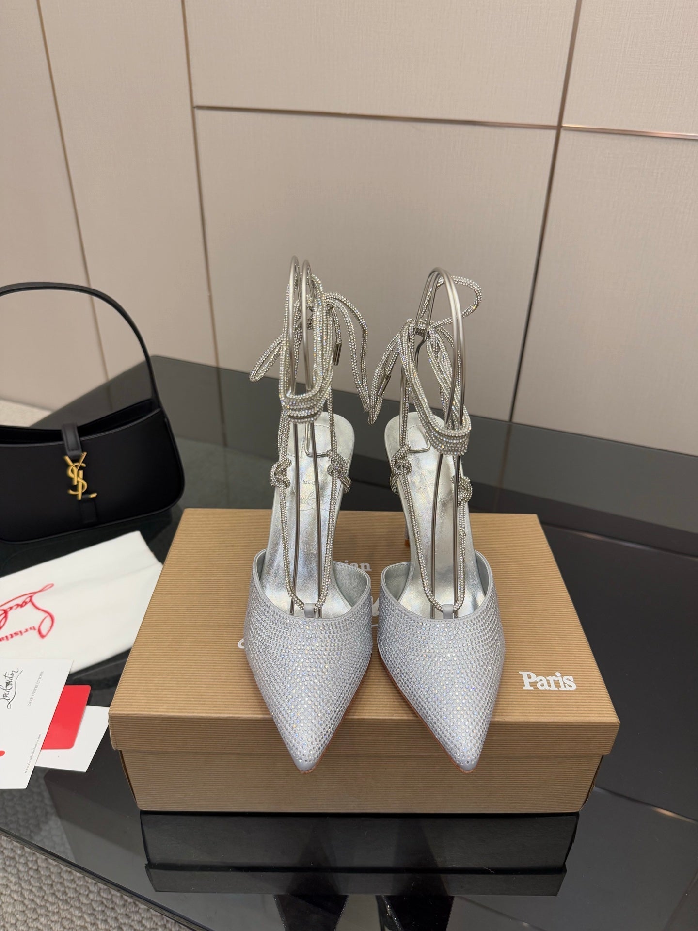 CL x Margiela 25 Diamond Pumps Sliver Fabric Lace Swarovski 296039