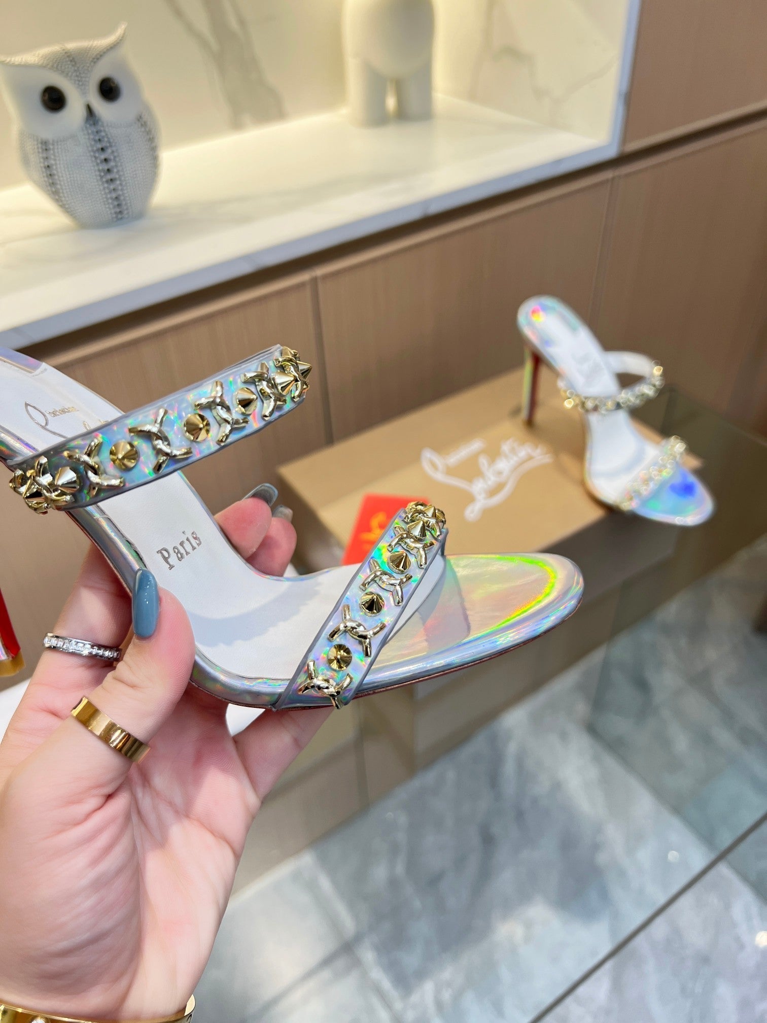 Cl Iriza 85mm Pumps Glittered Calf Leather Silver