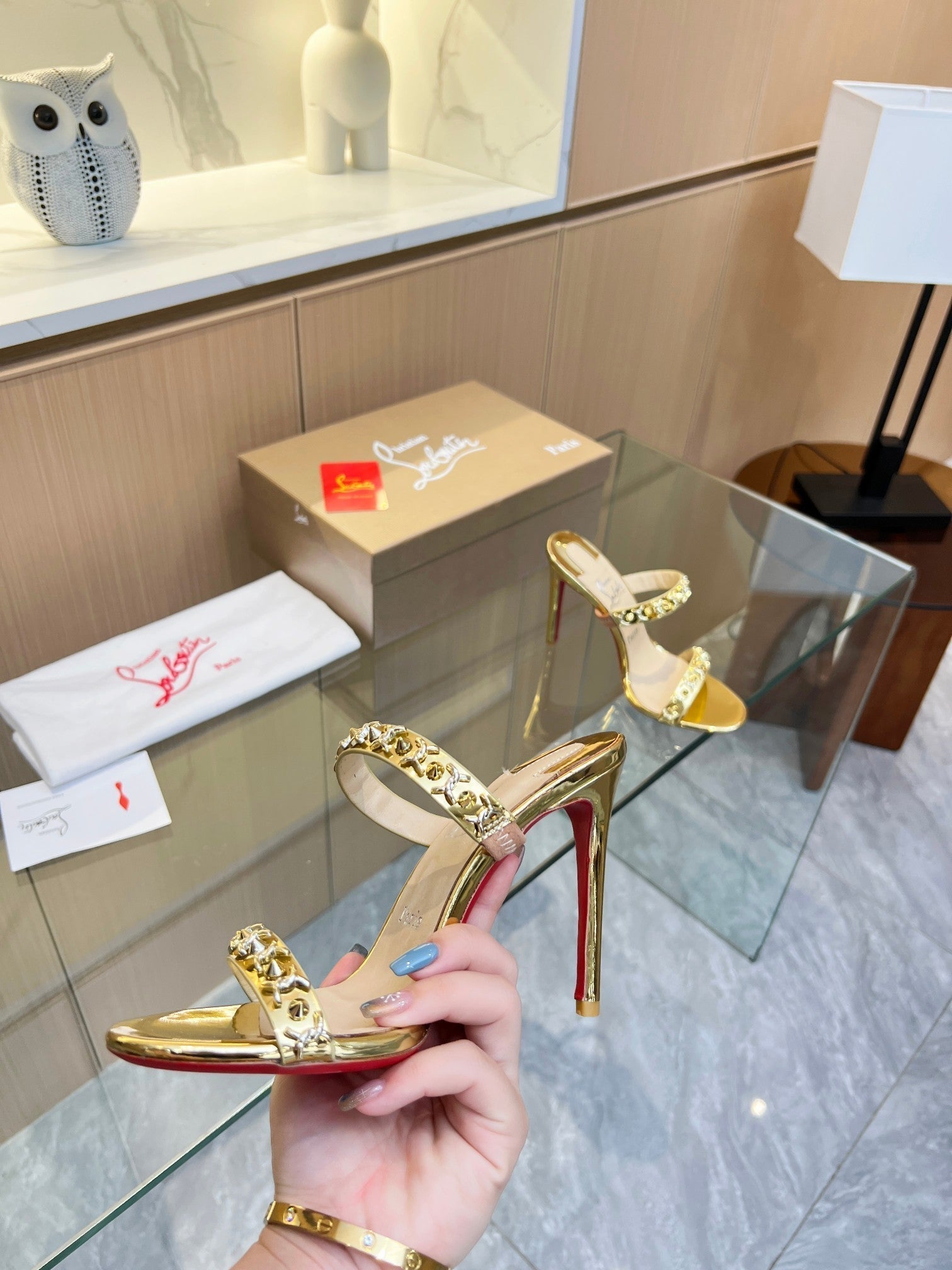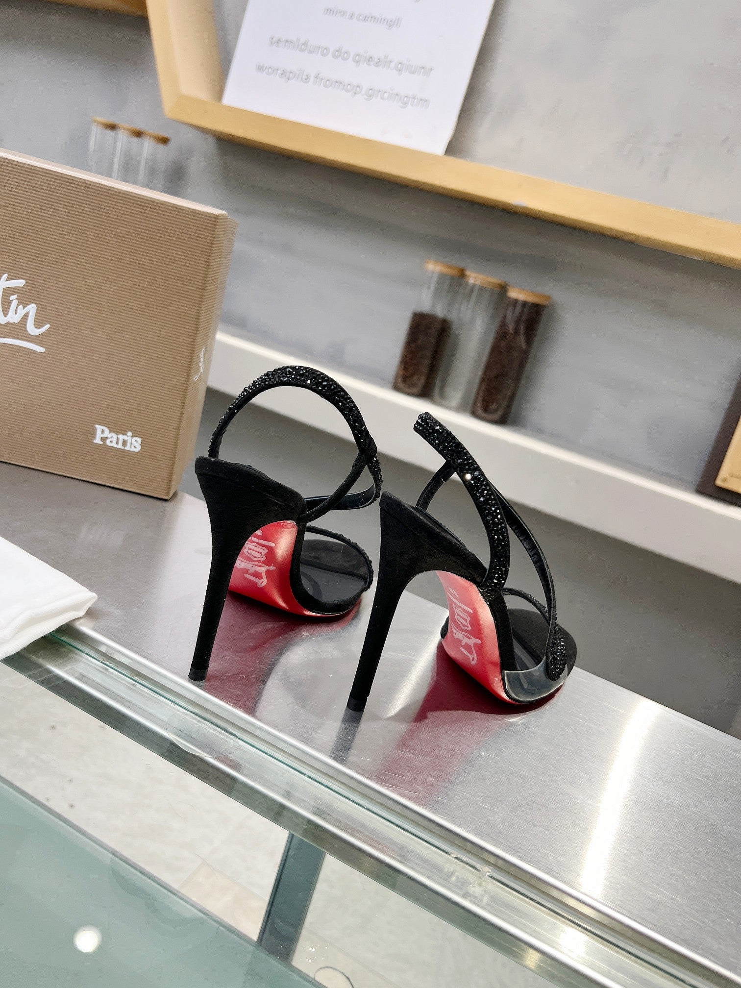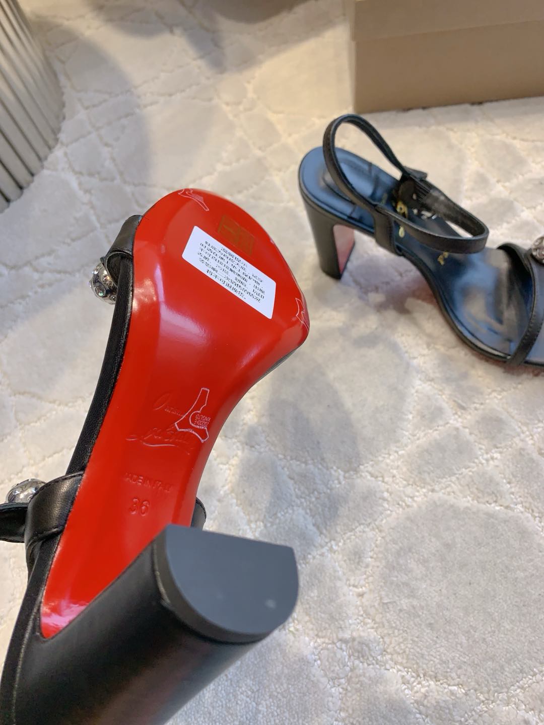 CL So Me 105 mm Strappy Sandals Black Imported Rivets with Sheepskin 251021