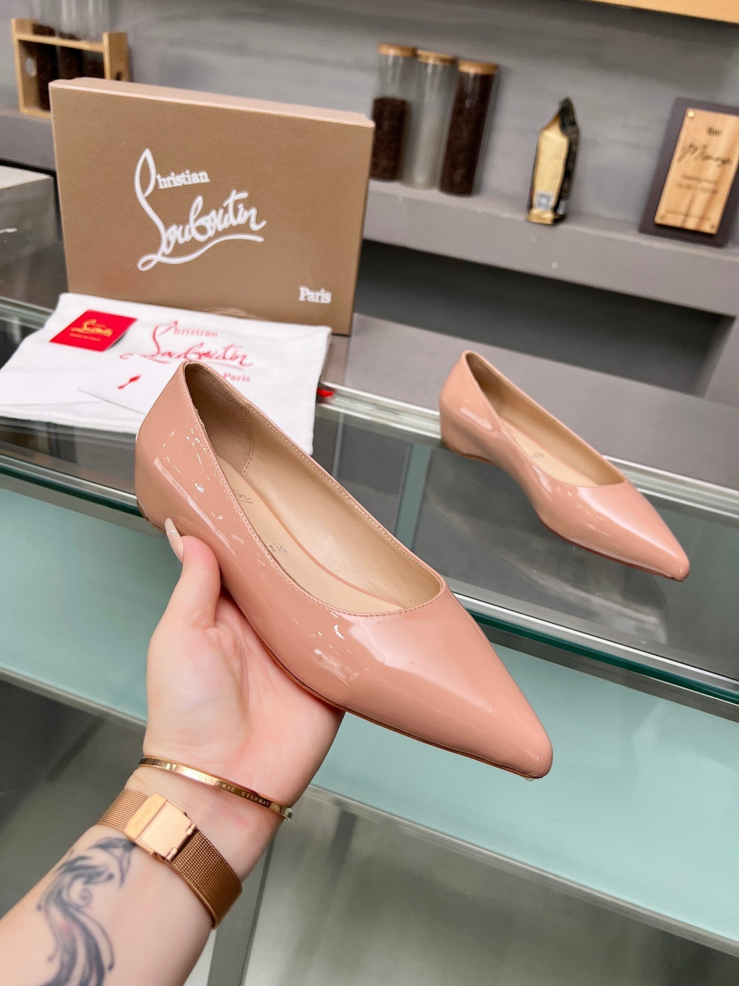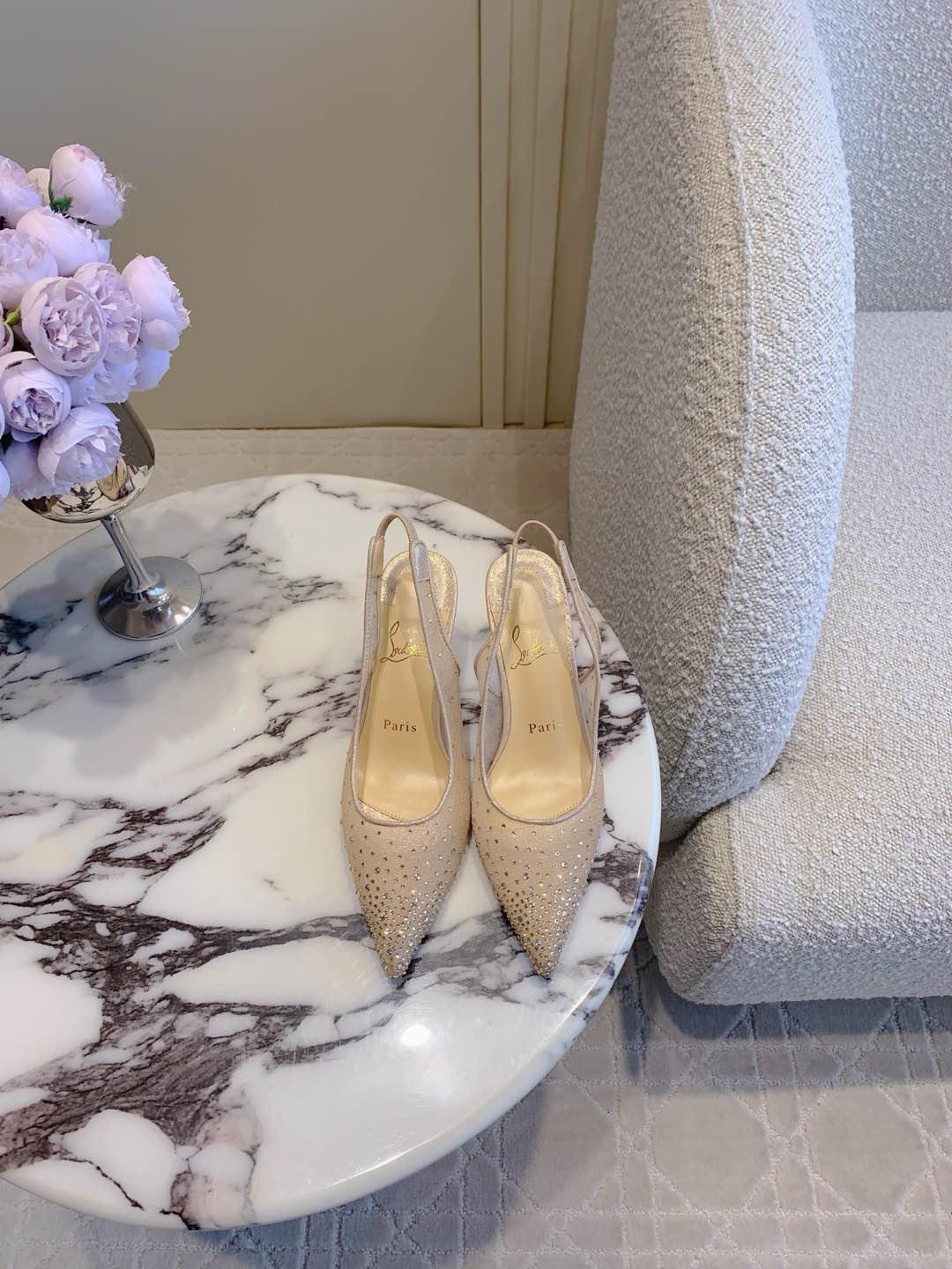 CL Degrastrass Flats Silver PVC and Strass Light Peach