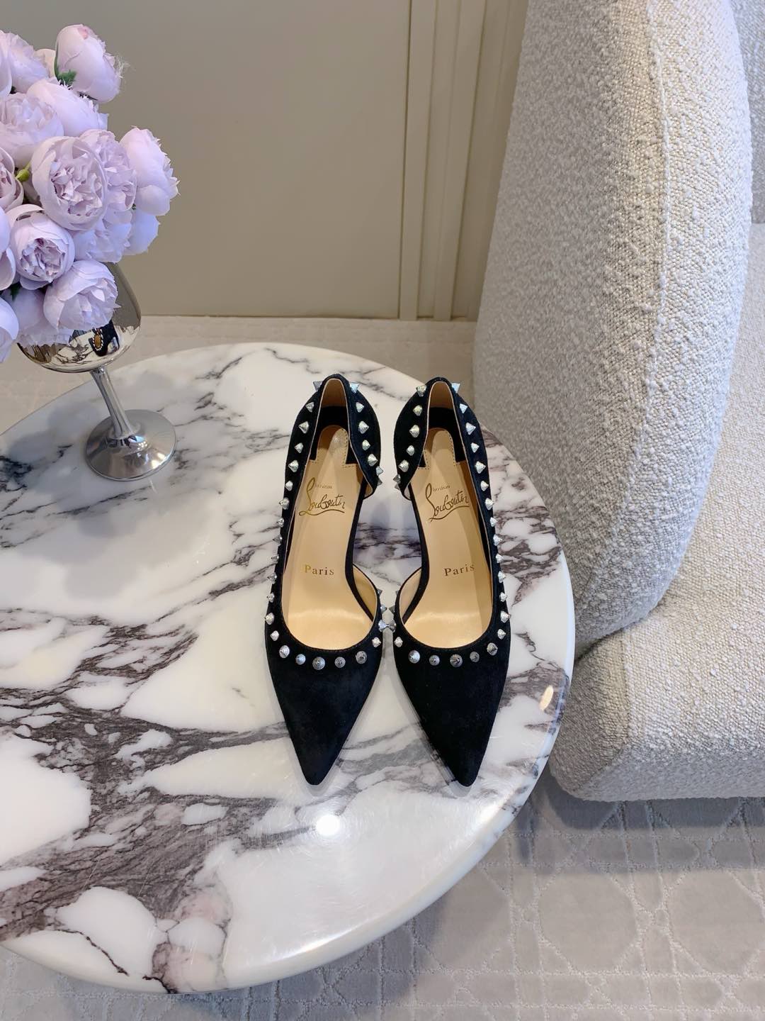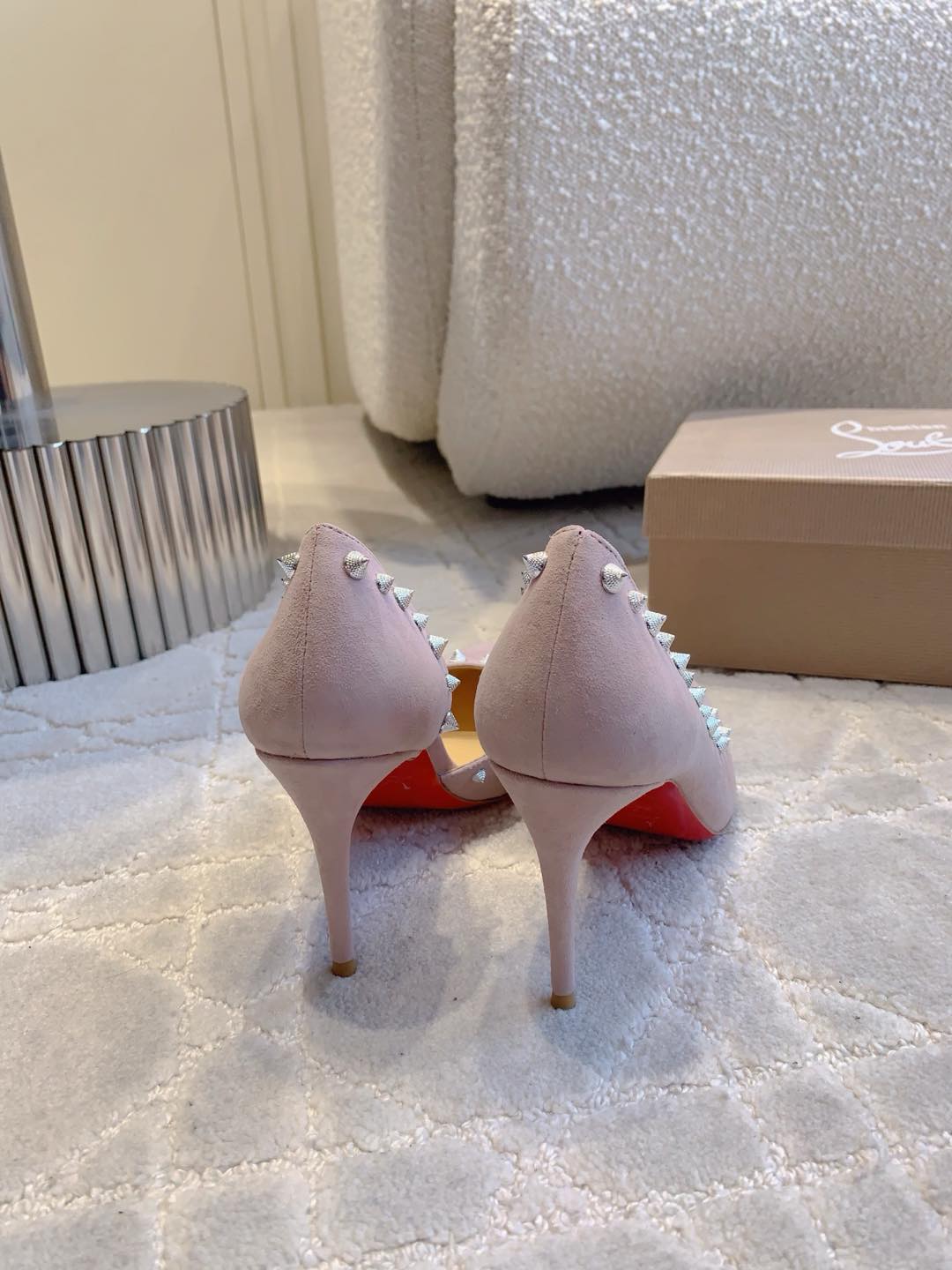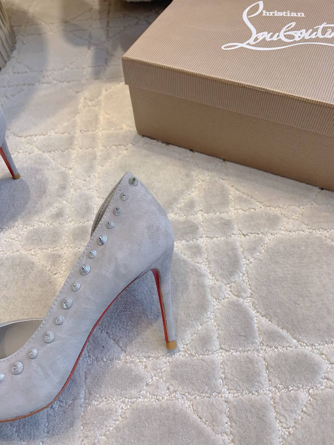 CL Irishell 85 Studded d'Orsay Pumps Cream Suede 177131