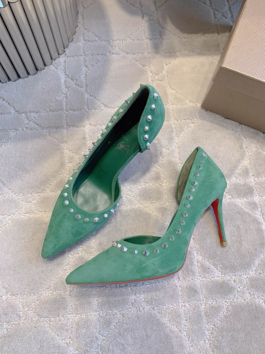 CL Irishell 85 Studded d'Orsay Pumps Green Suede 177127
