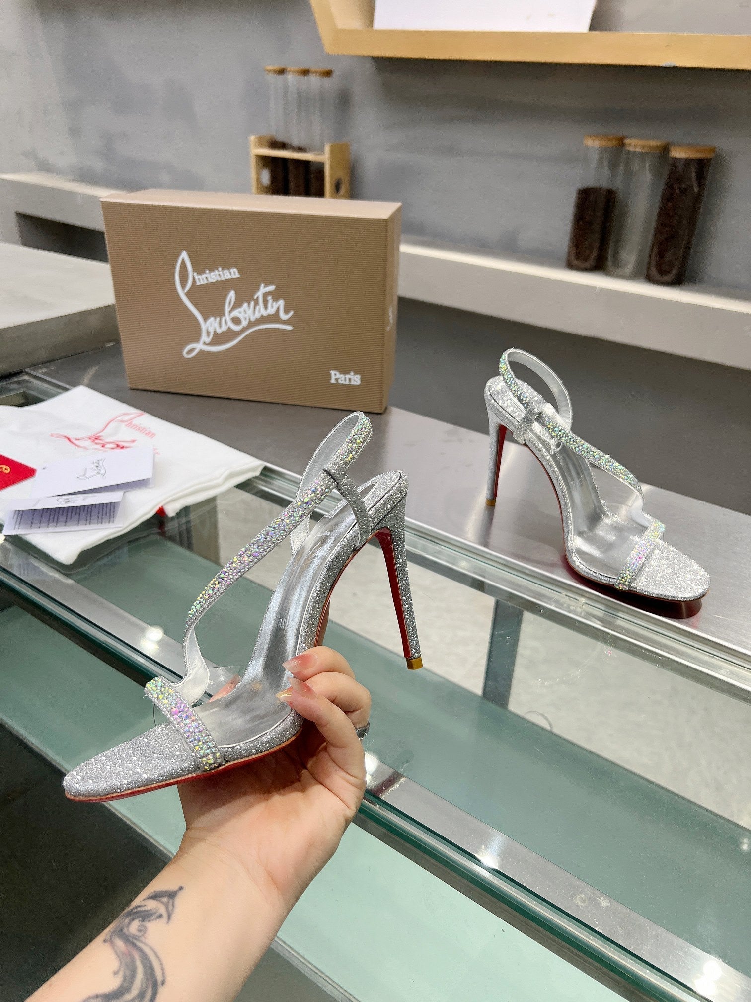 CL Degrastrass Flats Silver PVC and Strass Silver