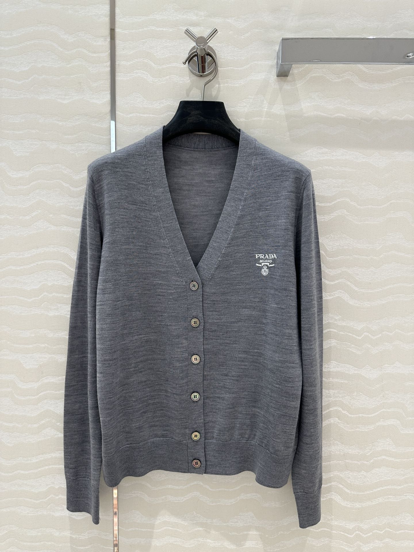 Miu Miu Polo Collar Cardigan Gray Cashmere