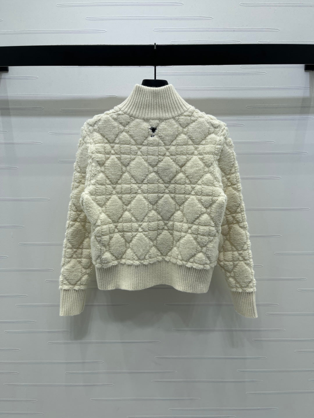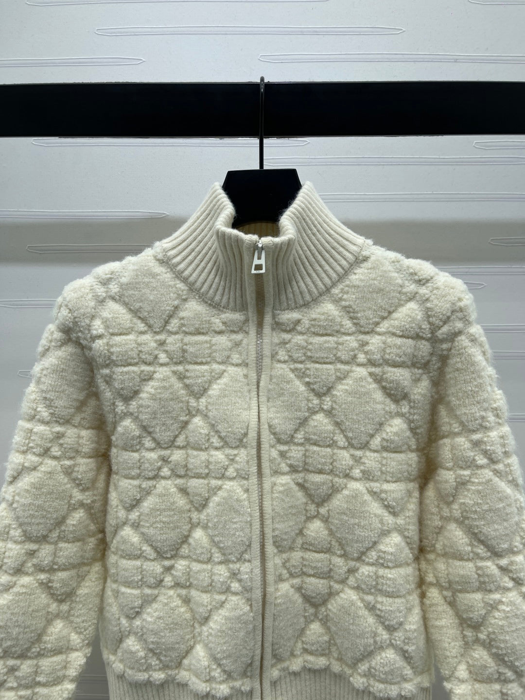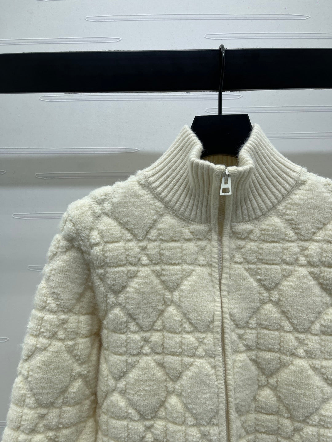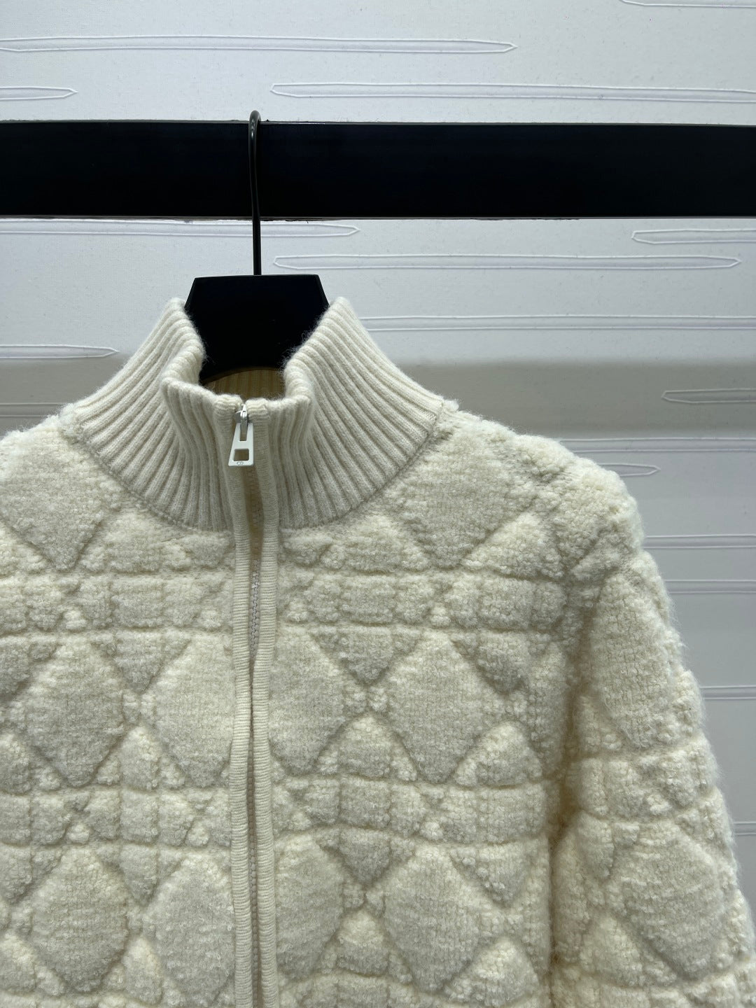 CD 25 Cardigan Stand Collar Light Beige Wool